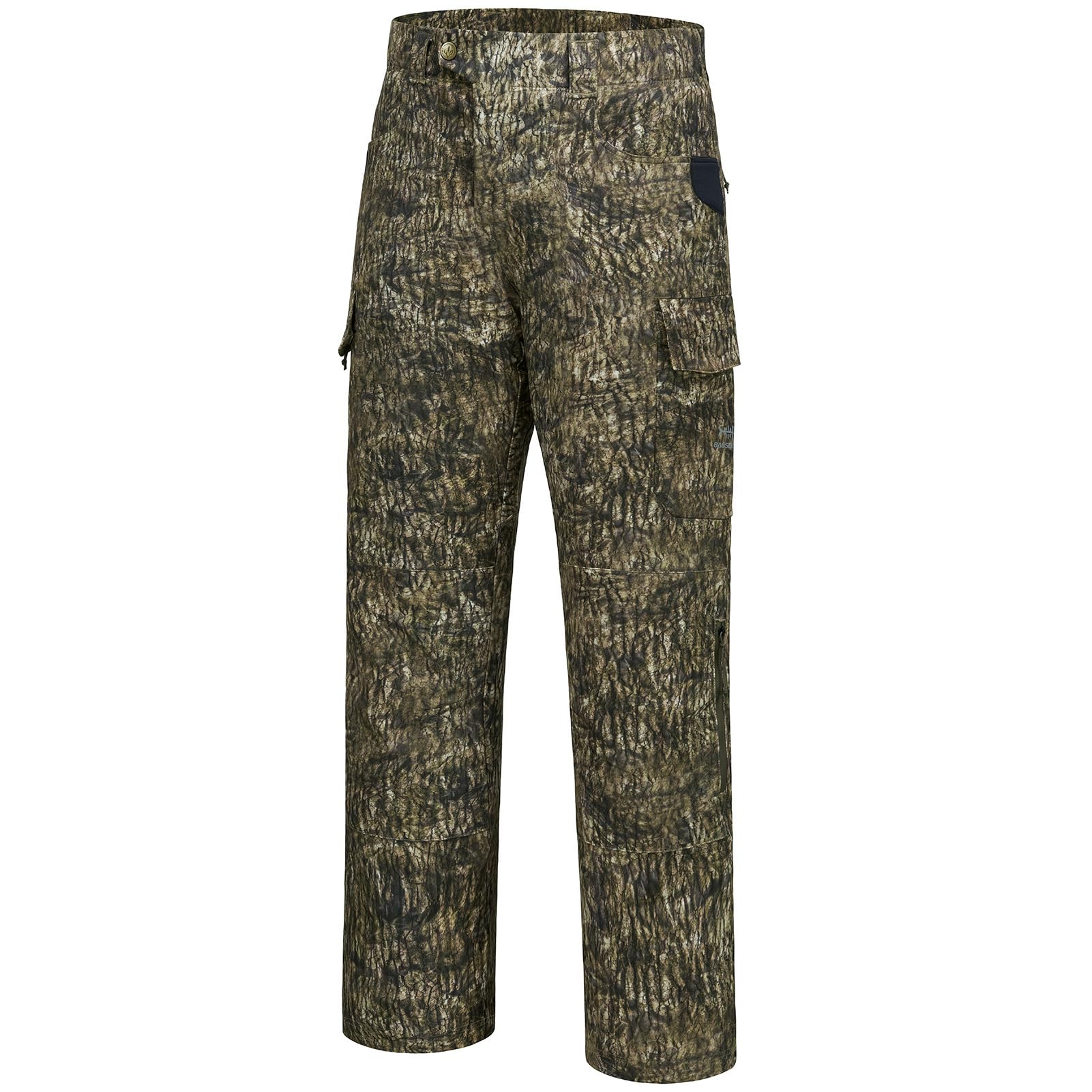 Silent, four-way stretch fabric with water resistant treatment and superior breathability offers freedom of movement and throughout comfort for long miles in the field; All in Bassdash unique concealing camo colors