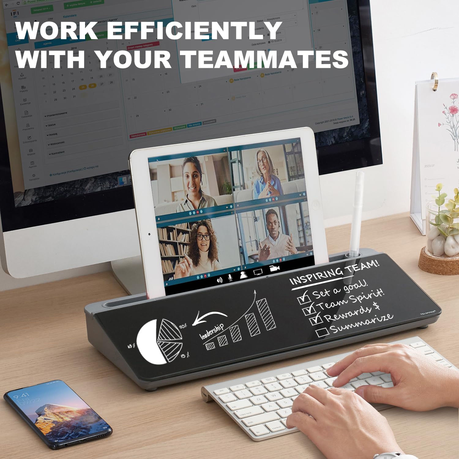 PERFECT DESIGN: Maximize your work area. The desktop whiteboard is designed to sit perfectly between a keyboard and monitor and is slope angled for comfortable reading and writing, or typing when you are using it as a keyboard stand.