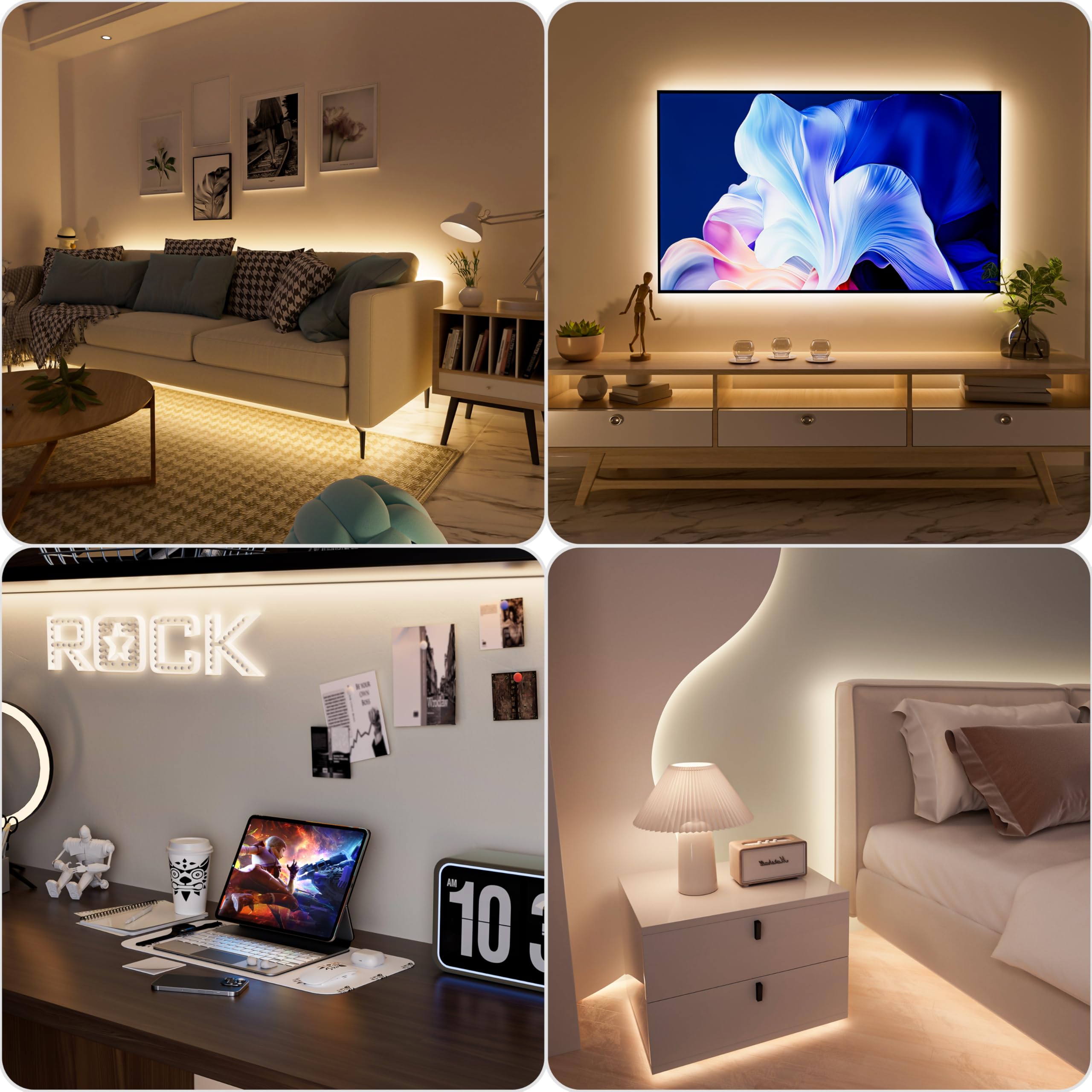 【Widely Use】 Flexible soft natural white 4000K color temperature with high color rendering index(CRI>90),PAUTIX 6.56ft USB LED strip lights delivers even natural white lighting,it's ideal for under cabinet, bedroom, kitchen, living room, shelving or displays