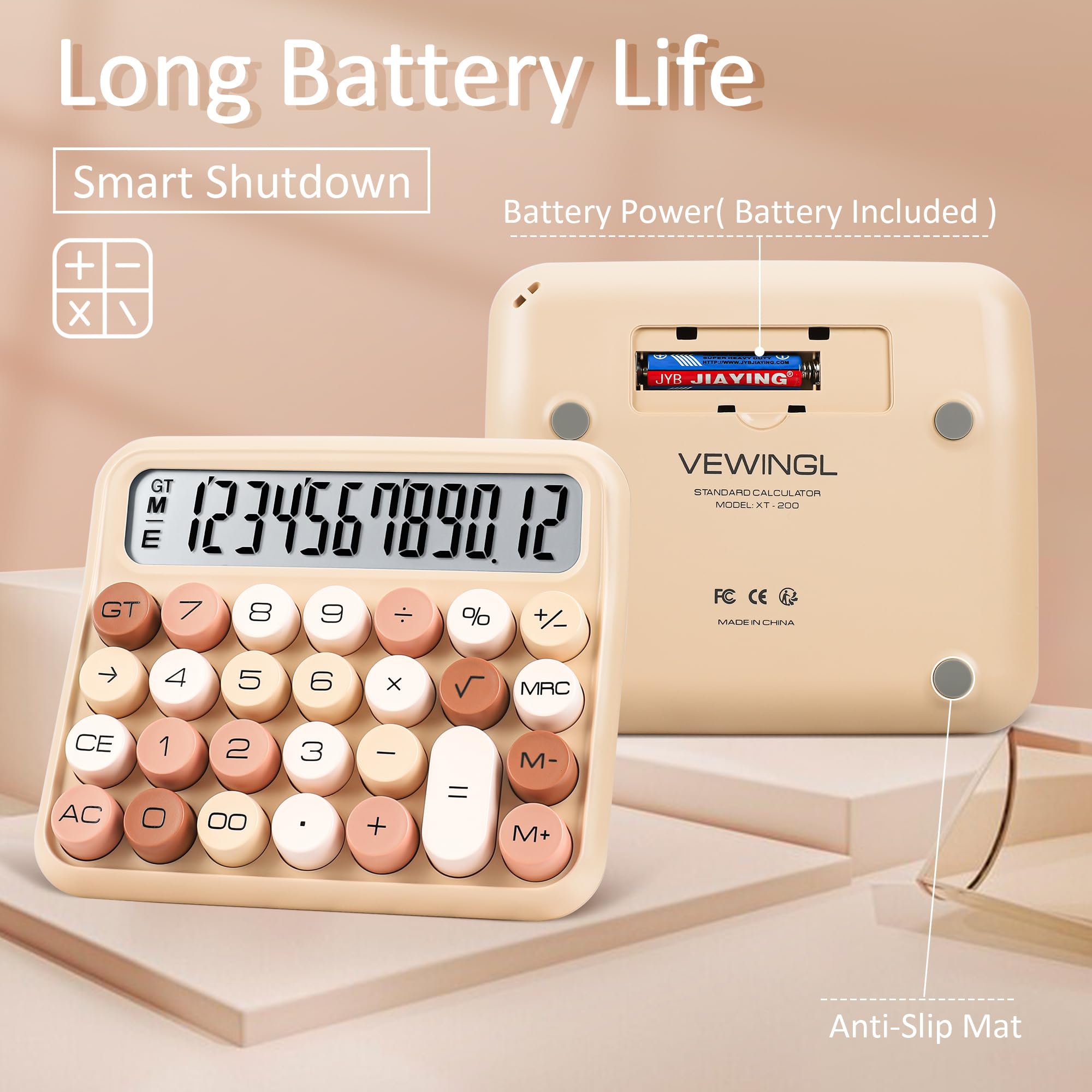 DURABLE MATERIAL: Good feel, ABS plastic material, light weight. Reasonable configuration, comfortable operation, automatic shutdown, independent memory, M+, M-, total (GT), delete key (→),square root(√ ̄)percentage (%). Anti-slip design, with anti-slip washers, it is not easy to slide during operation.