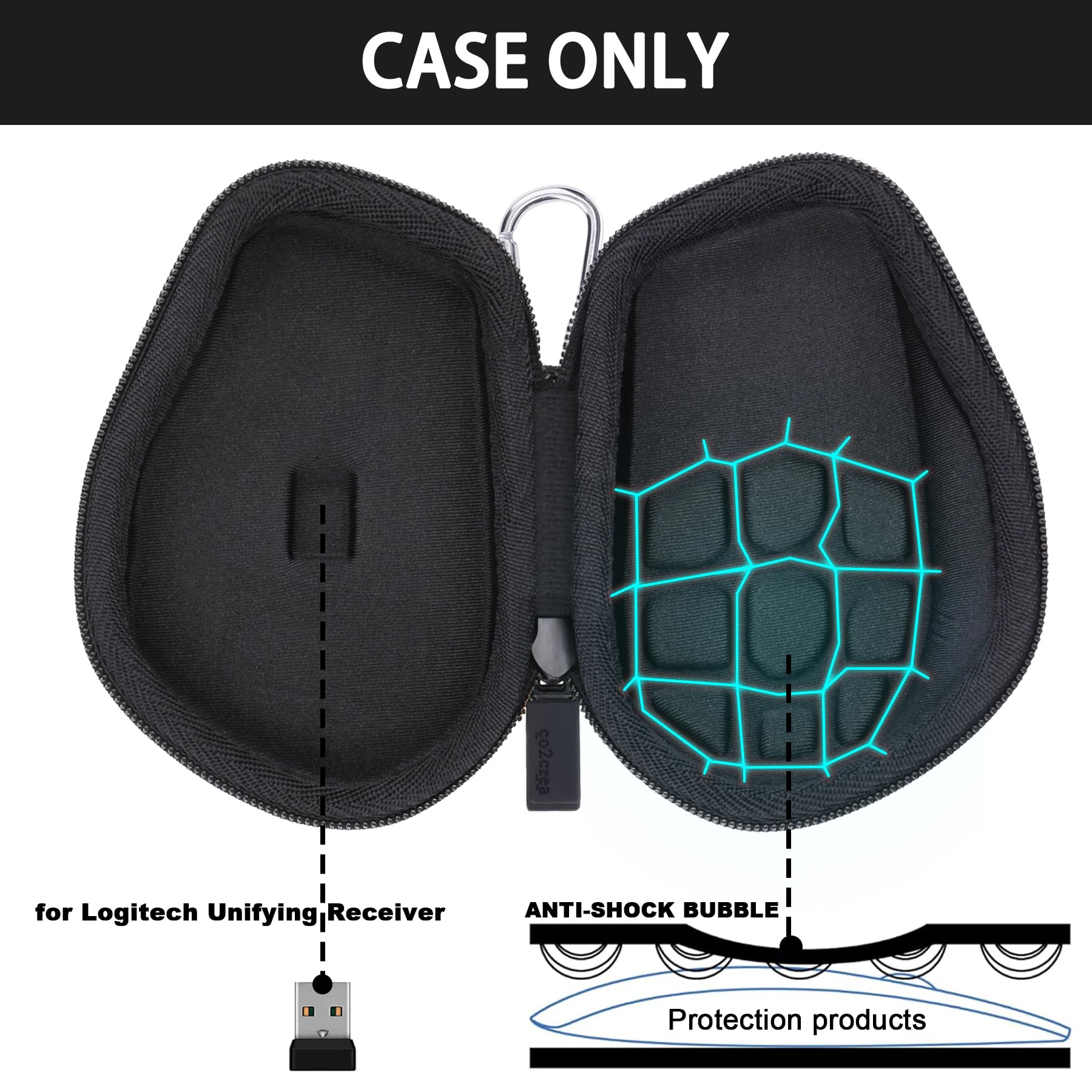 Thoughtful Internal Structure: The interior of the MX Master 4 case boasts a custom - molded design with bubble padding, perfectly accommodating Logitech MX Master 4, Logitech MX Master 3S for mac, Logitech MX Master 3 and Logitech Master MX 4 USB receiver. The precision - engineered compartments, along with the protective bubble padding, cradle each part of your Logitech MX Master 3S wireless mouse, ensuring the scroll wheel, buttons, and body stay intact and shielded from impacts.