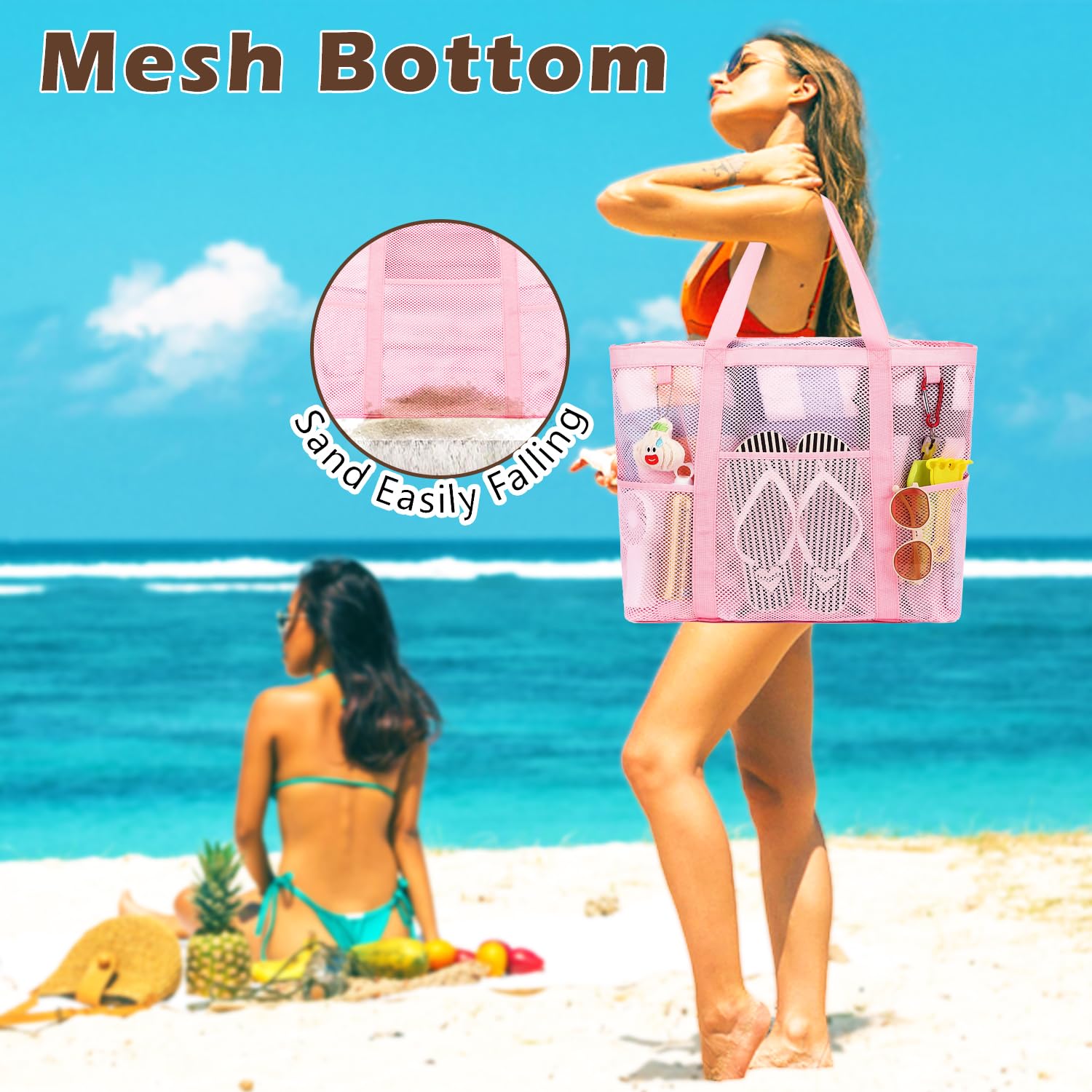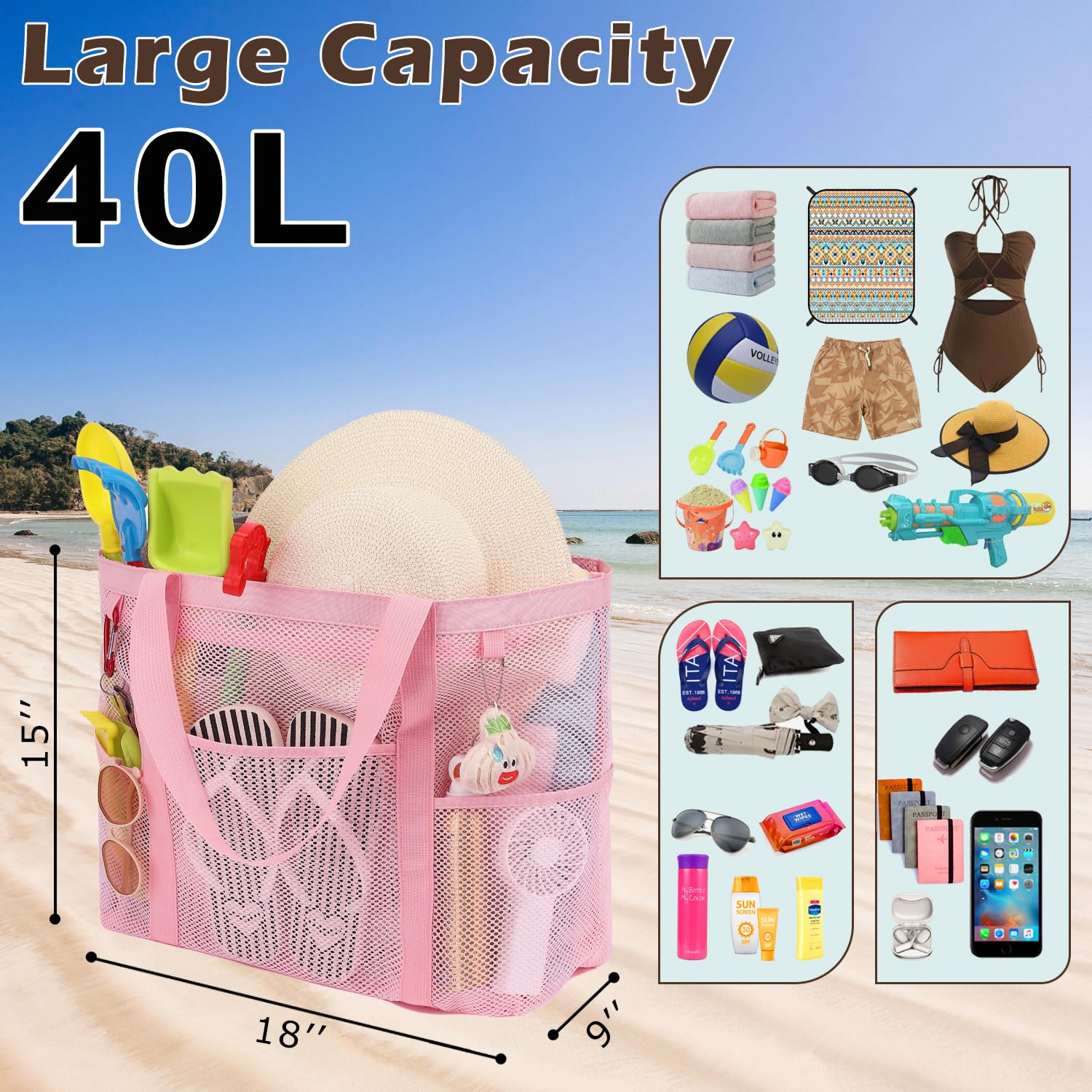 ๐๏ธใ๐๐ฆ๐ฉ๐ฅ๐ ๐๐ญ๐จ๐ซ๐๐ ๐ & ๐๐๐ฌ๐ฒ ๐๐ซ๐ ๐๐ง๐ข๐ณ๐๐ญ๐ข๐จ๐งใThe Fammart Mesh Beach Bag (17.9"L x 9"W x 15"H) provides spacious storage for towels, sunscreen, body wash, shoes, snacks, and more. The open mesh design makes it easy to organize and quickly locate your items.