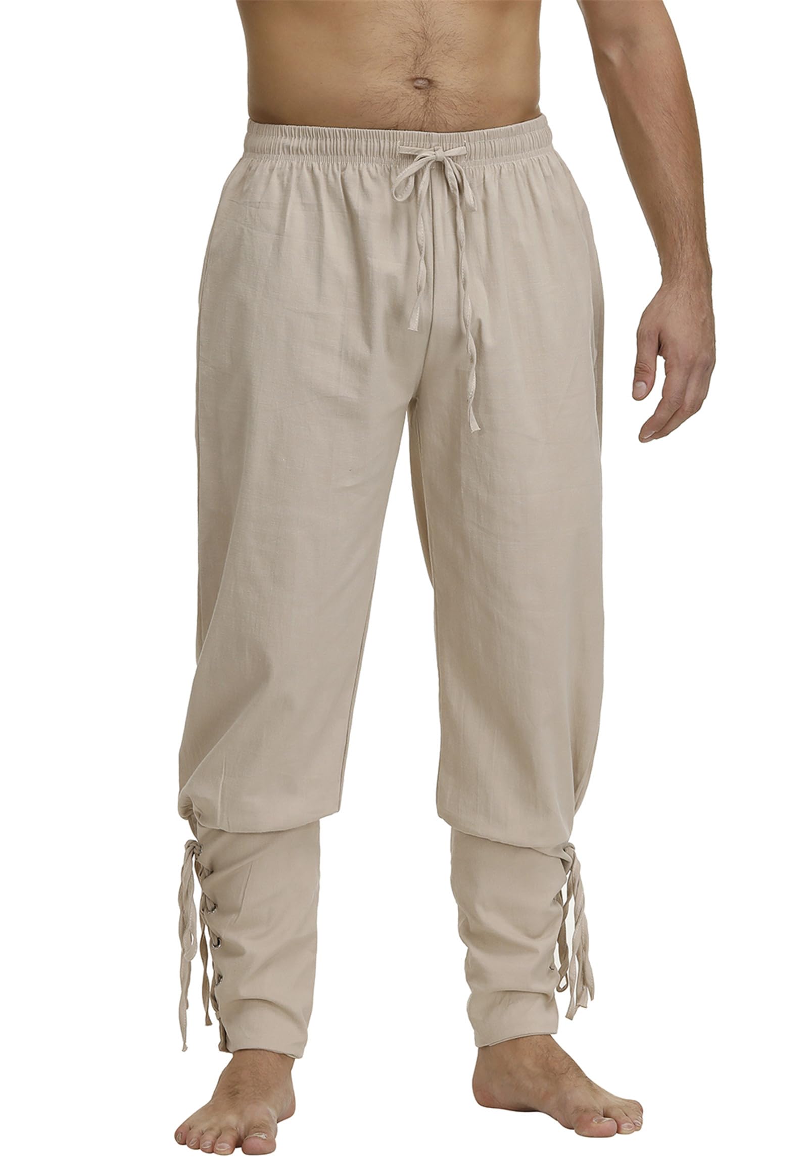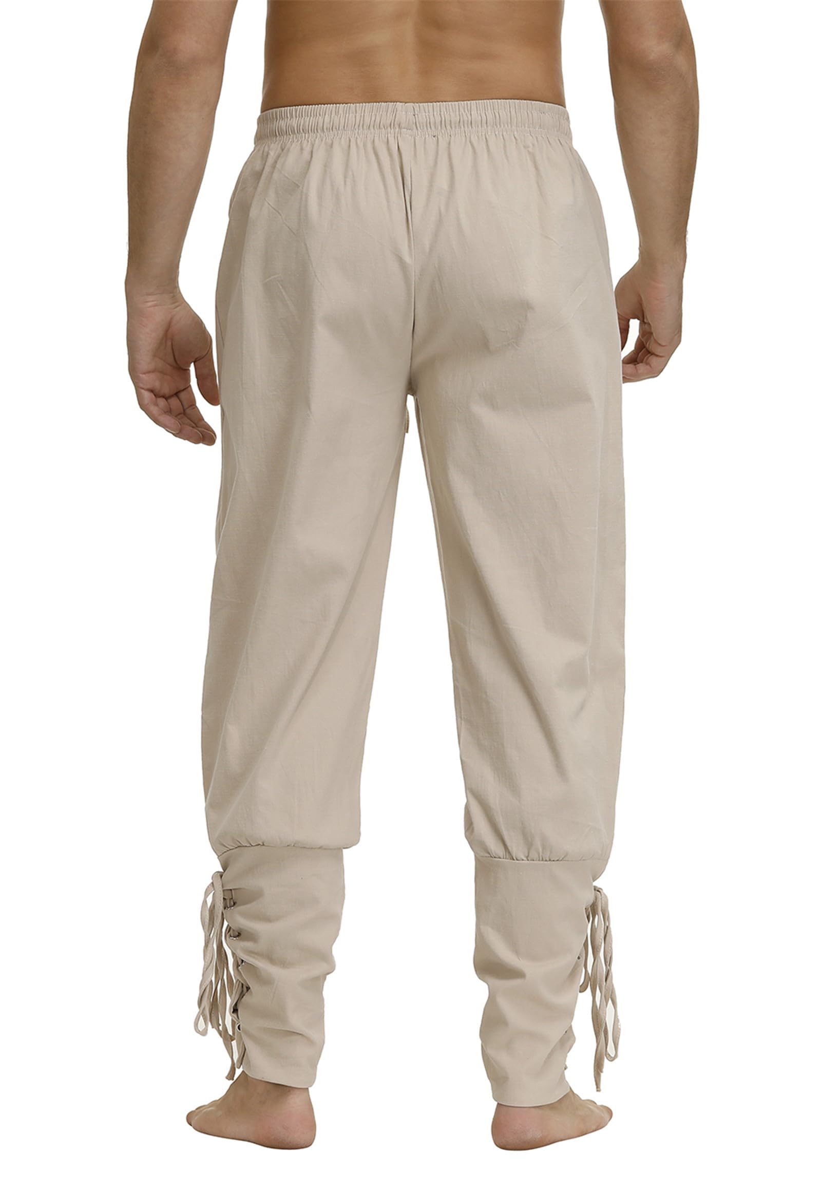 Feature: Lace Up Waist and Lower Leg Parts,Pants have adjustable lace-up cuffs at calf for easy sizing,What's more,Pants have draw-strings at the waist and have elastic for an easy fit,low crotch and very full leg for ease of moveMent.