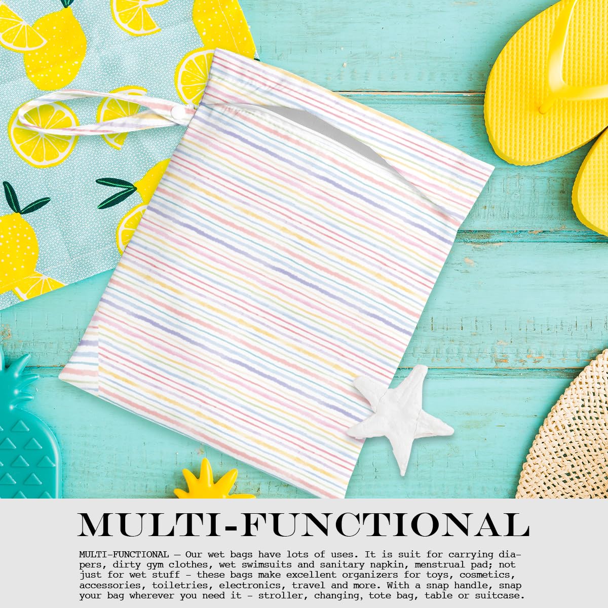 MULTI-FUNCTIONAL – Our wet bags have lots of uses. It is suit for carrying diapers, dirty gym clothes, wet swimsuits and sanitary napkin, menstrual pad; not just for wet stuff - these bags make excellent organizers for toys, cosmetics, accessories, toiletries, electronics, travel and more. With a snap handle, snap your bag wherever you need it - , changing,tote bag, table or suitcase.