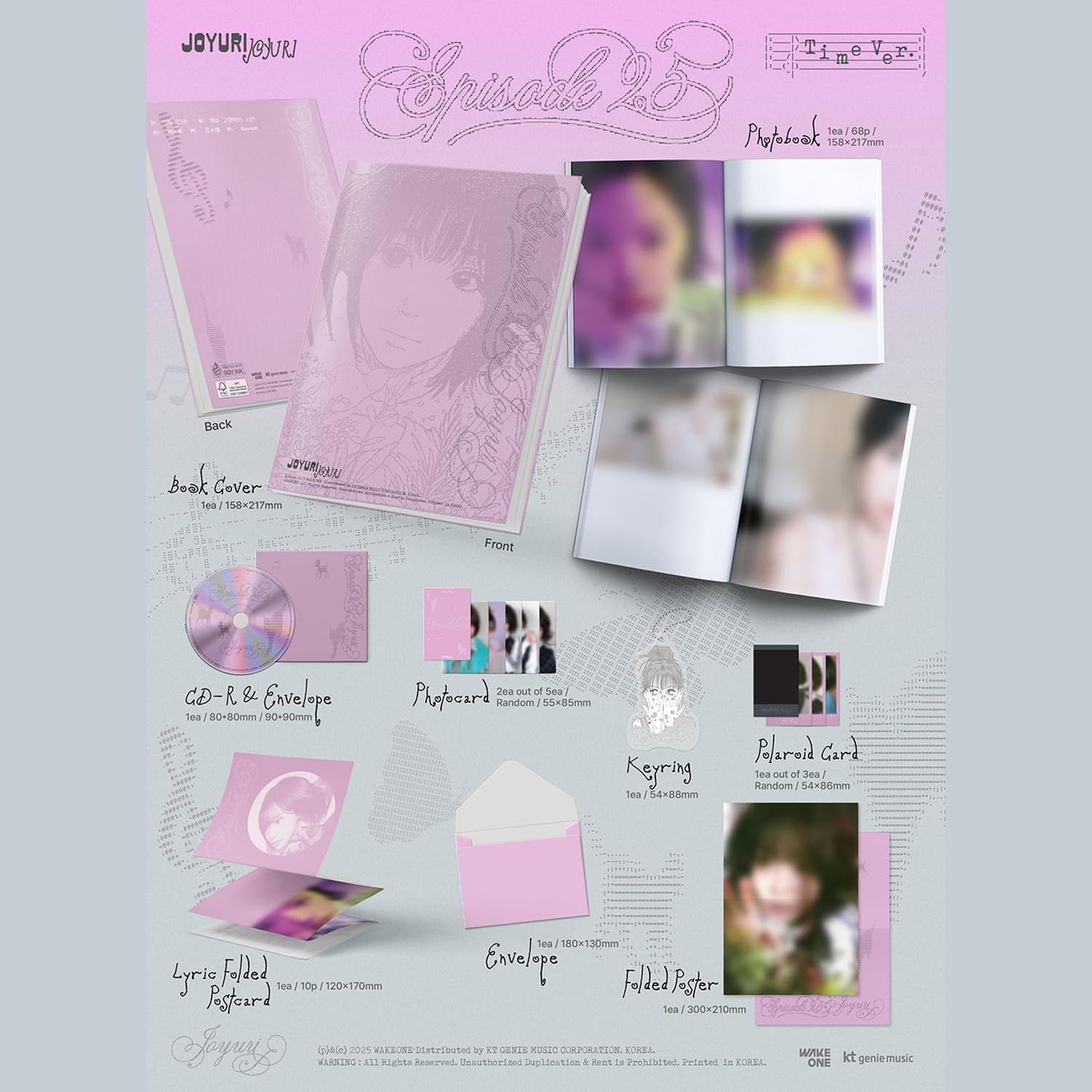 Made from Korea, Republic of Officially distributed Brand New & Factory Sealed. Will be Count Towards Hanteo and Gaon Chart. ───────────────────────── ♡ JO YURI - The 3rd Mini Album ’Episode 25‘ ───────────────────────── [ FEATURES ] □ Release Date ■ 2025.07.15 ───────────────────────── □ Version ■ Time Ver. ───────────────────────── □ Components ■ Photobook (68p) ■ Book Cover ■ Mini CD-R & Envelope ■ Photocard (2 of 5,Random) ■ Lyric Folded Postcard (10p) ■ Envelope ■ Keyring ■ Polaroid Card (1 of 3,Random) ■ Folded Poster