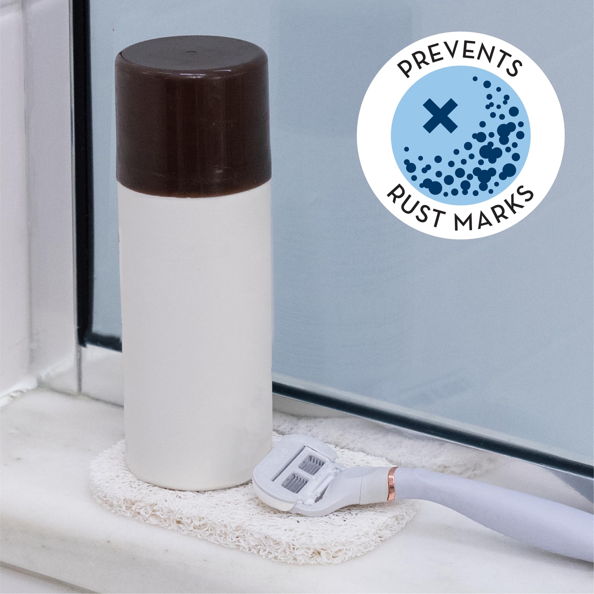 Place at the sink or in the bath or shower for a secure hold on shelves; try using under personal care products like shampoo, conditioner, and shaving cream bottles to keep shelves cleaner