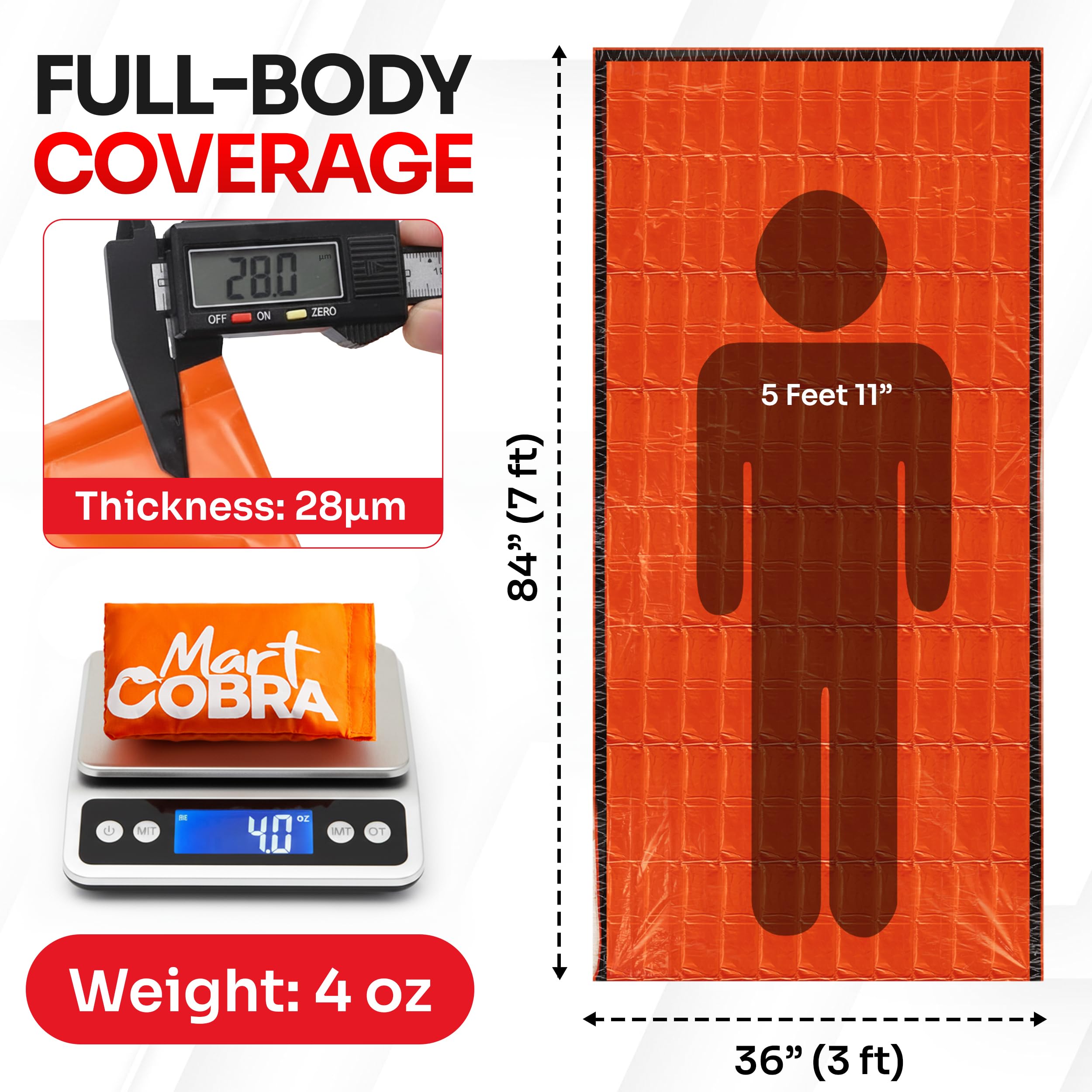 FULL BODY PROTECTION: Sized at 84"x 36", each emergency camping thermal sleeping bag provides warmth even without a survival tent. Can act as a bivy blanket or sleeping bag bivy. Mylar sleeping bags for adults or children, big enough for all sizes.