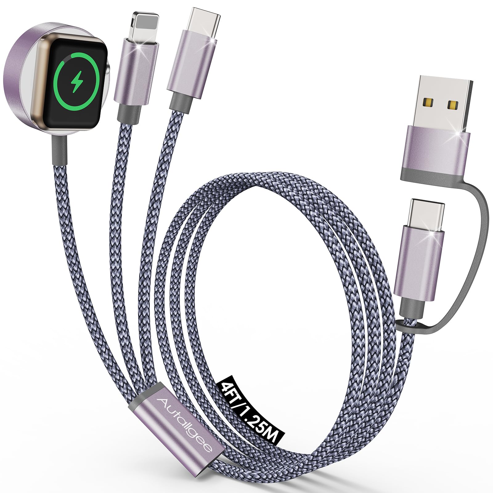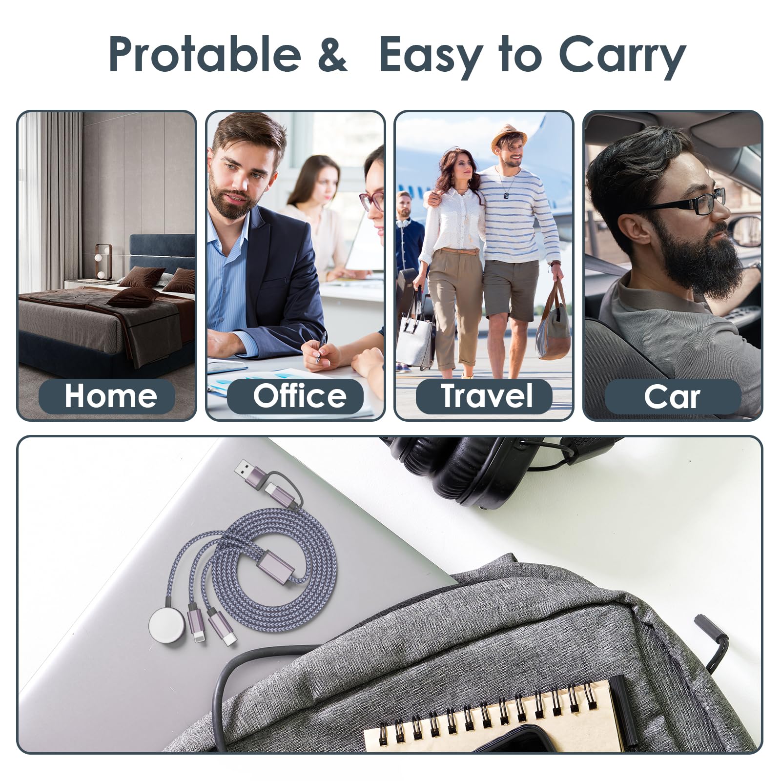 【Travel Essentials & Car Accessories】 Designed as travel cable.The 4ft 3-in-2 USB-C cable is a travel essential, a must have car accessory,and perfect for your beach vacation essentials. Use this portable charging cable compatible with Apple Watch,Phone,other USB-C/Lighting devices on airplanes, cruises, road trips in the car, or with power banks. Its portable design makes it ideal for traveling,vacation essentials and charging anywhere – perfect for home, office, or travel accessories