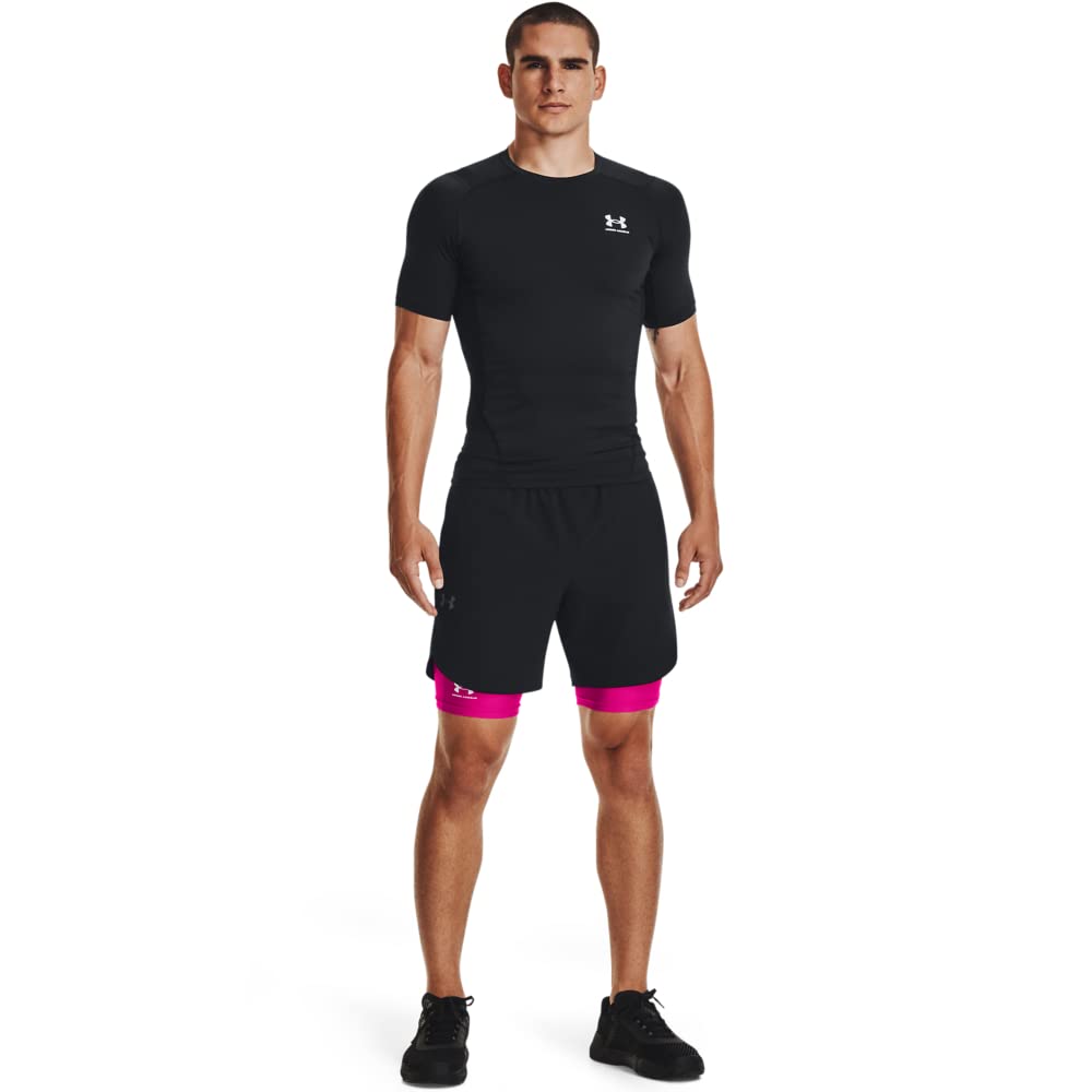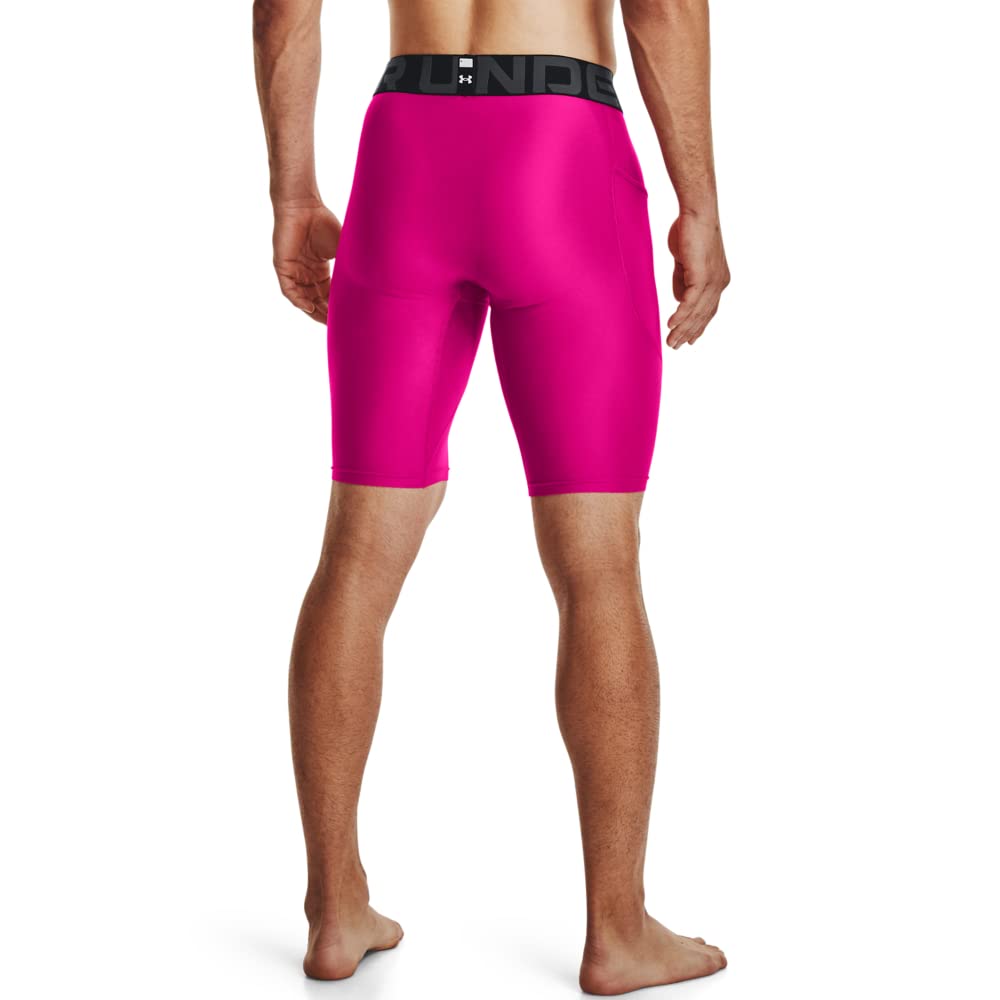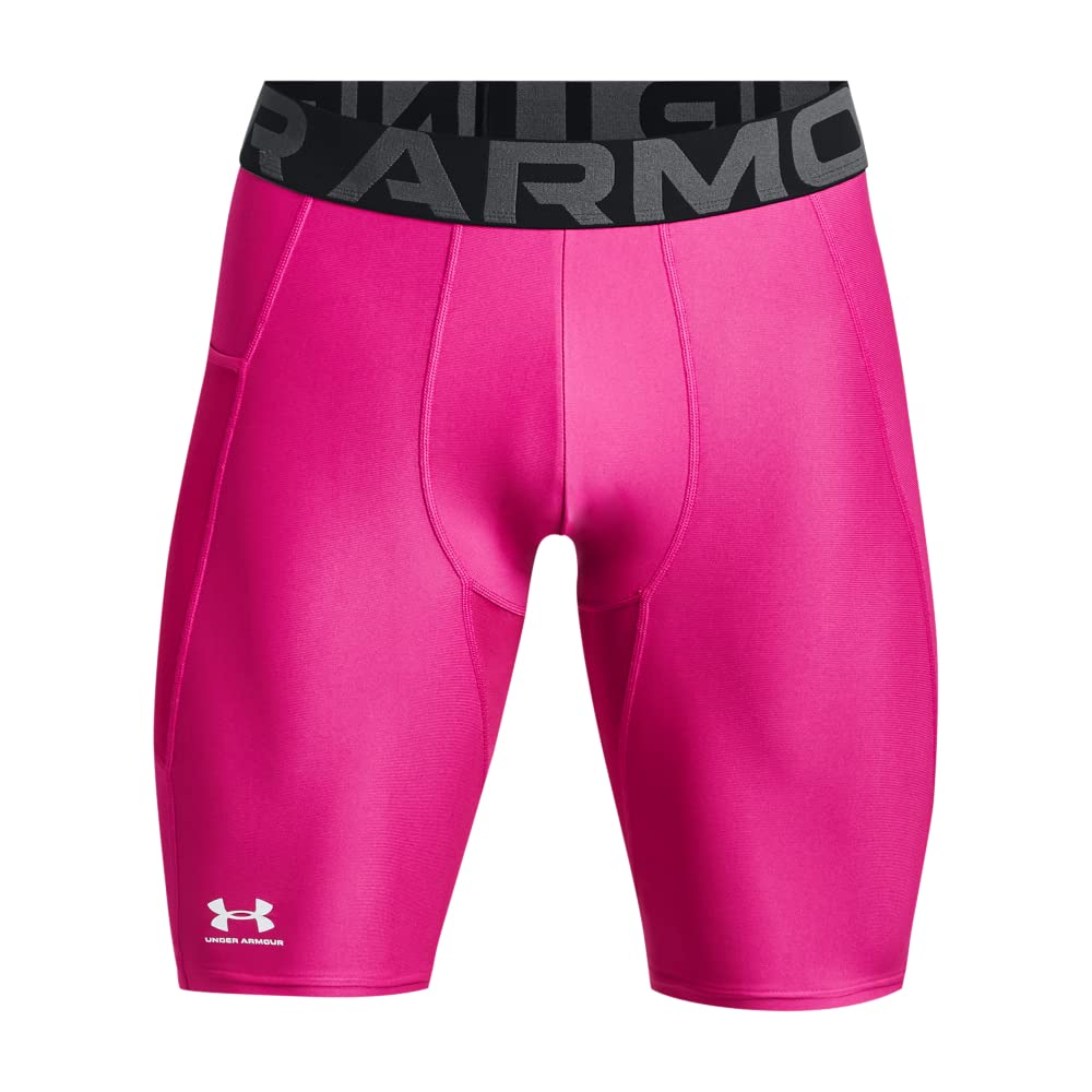 Description HeatGear® Armour is our original performance baselayer—the one you put on first and take off last. So we made it extra comfortable by wicking sweat and stretching so you can move. No athlete can go without it. Super-light HeatGear® fabric delivers superior coverage without weighing you down. Strategic mesh panels for added ventilation where you need it. Material wicks sweat & dries really fast. Ergonomic design keeps seams off high abrasion areas & increases durability. Wide, exposed elastic waistband with wordmark detail. Updated gusset design provides ultimate support & comfort. Drop-in Strength Pocket™ on right side for easy storage. Inseam: 9"". No fly. Compression: Ultra-tight, second-skin fit. 84% Polyester/16% Elastane.