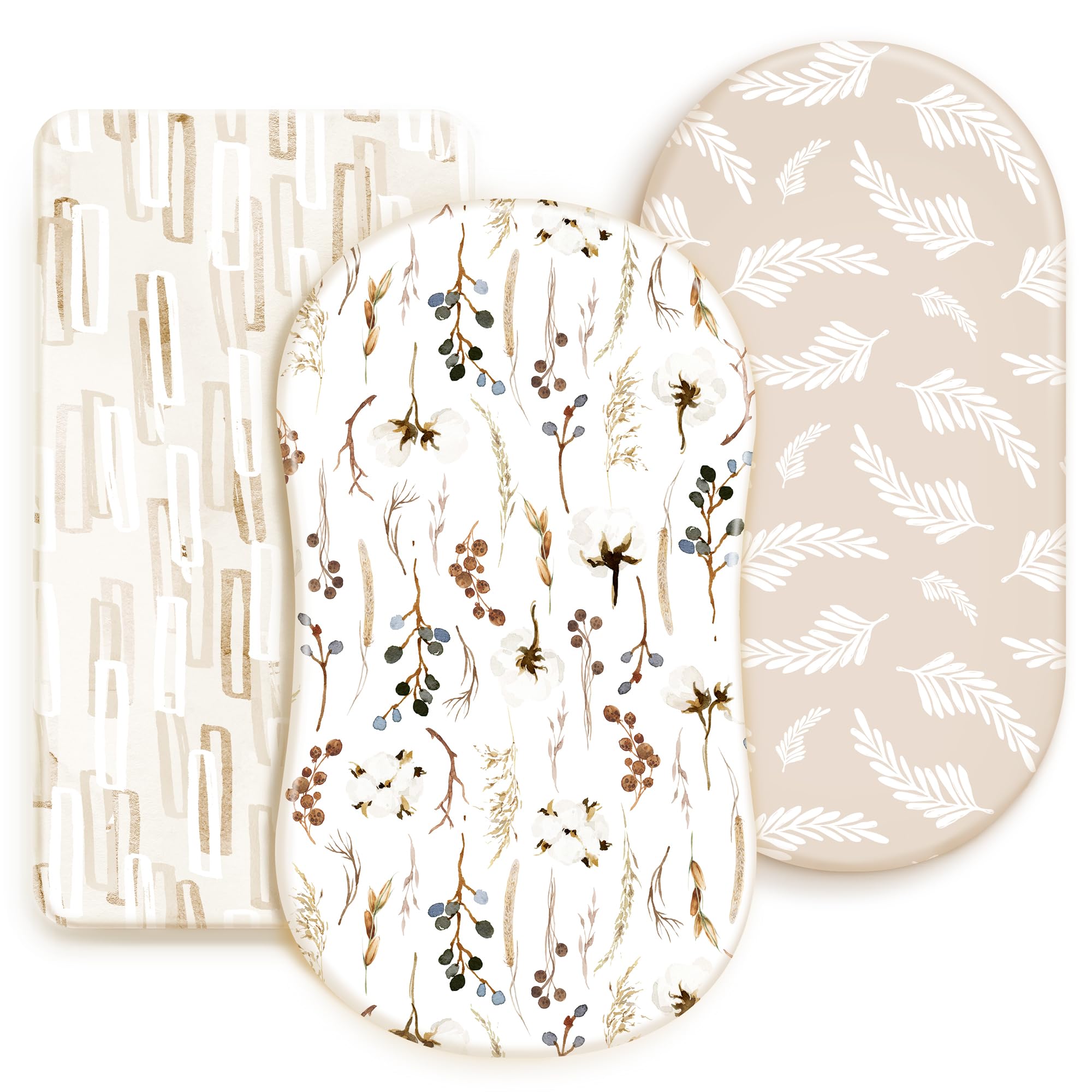 Universal Fit – Measuring 32" x 16" x 5". Our bassinet sheets fit almost all standard oval, round, rectangle, hourglass shaped bassinet mattress. Each bassinet mattress pad cover comes with an elastic band encased at the bottom for safety.