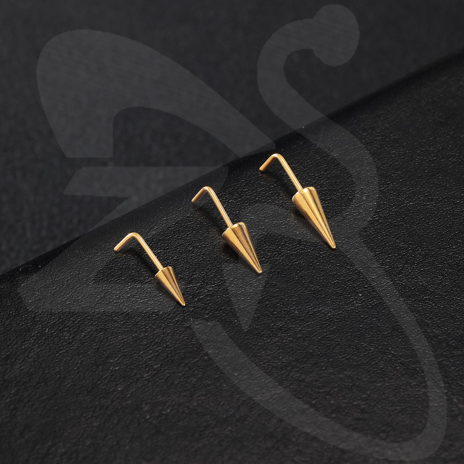 ❀Spike Nose Piercing Jewelry——You will receive 12 Pieces 20g l shape nose studs (6Pcs Gold and 6Pcs Sliver). The nostril piercing jewelry can be as gift for Families or Friends on Birthday, Graduation, Mothers' Day, Thanksgiving, Christmas, Valentine's Day, etc.