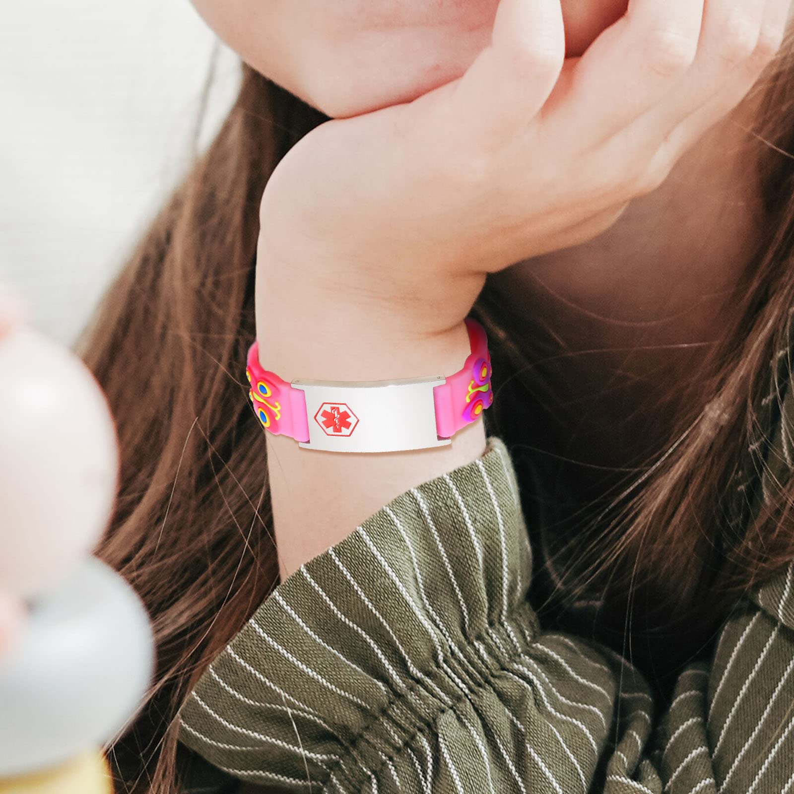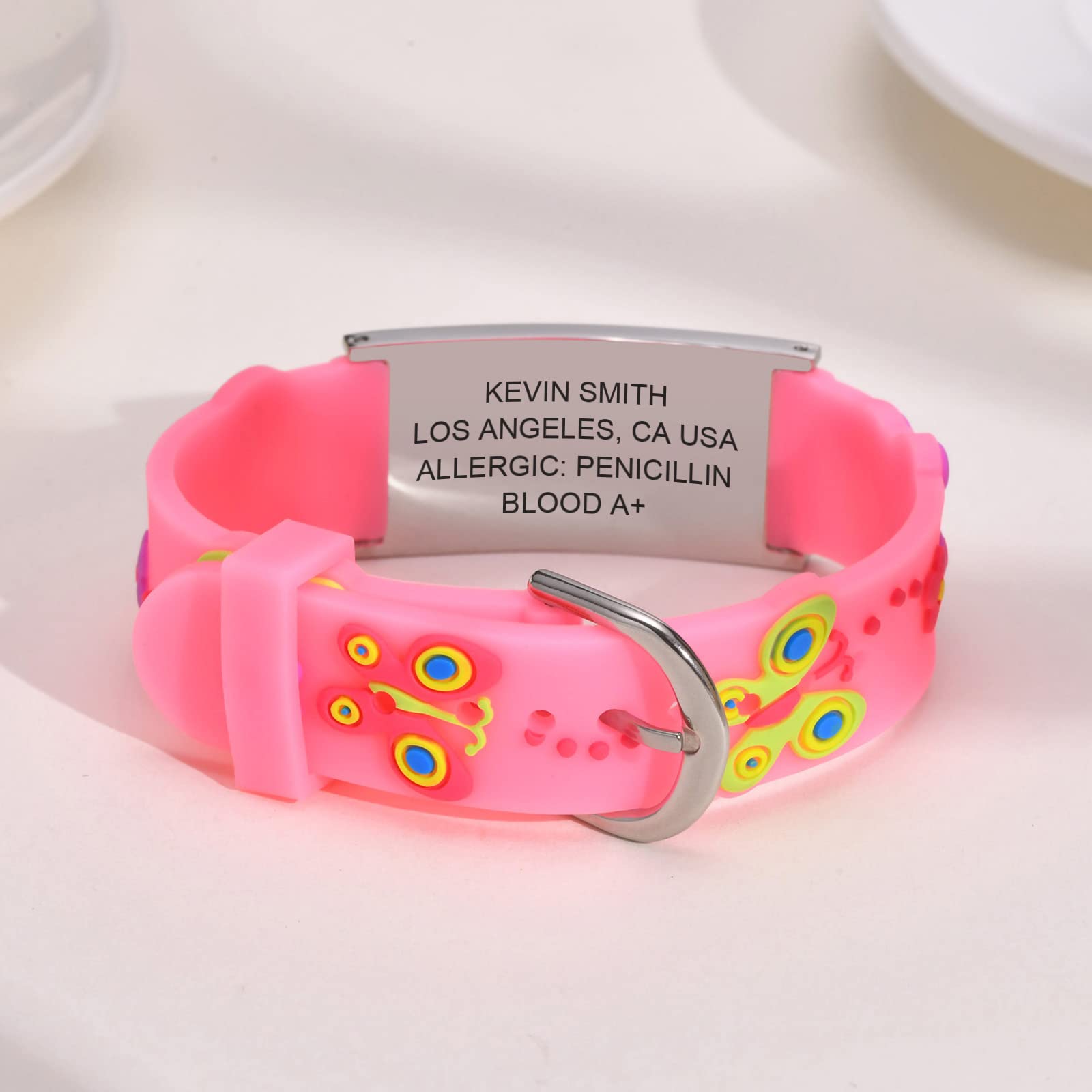 đŚăSoft Silicone Kids Medical BraceletsăCrafted with soft silicone, this medical alert bracelet for boys and girls is a great hypoallergenic option. 3 years old above. These personalized ID bracelets have high resistance to rust, corrosion, and tarnishing. This kids medical alert ID bracelet is waterproof and extremely comfortable. The silicone band is durable and gentle on the skin, designed to keep you kids safe 24/7.