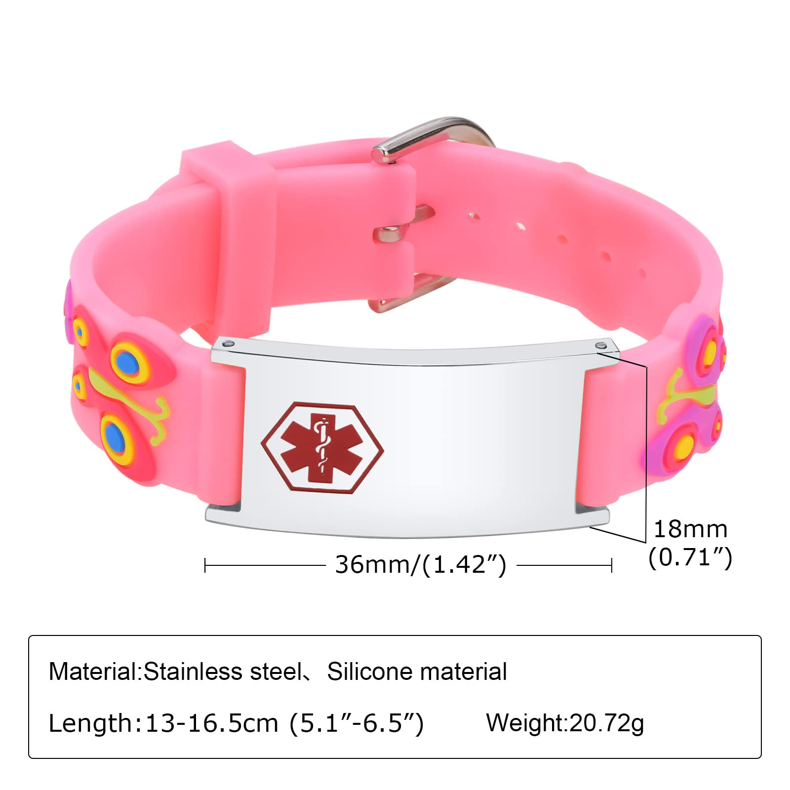 đăThoughtful Gifts for KidsăThe medical bracelet ift 5.1"to 6.5" Wrist. Front and back availability for emergency information, a medical ID bracelet speaks for them. Perfect for Autism/Special Needs Children, Blood Thinners, Diabetes, Drug Allergies (i.e. Penicillin, Morphine, Sulfa), Epilepsy/Seizures, Food Allergies, Hearing, Vision, or Mentally Impaired, Heart Disease, Insect Allergies, Kidney Disease, Pulmonary Conditions, Sickle Cell Anemia, Surgery, Transplant, Cancer Patients, etc.