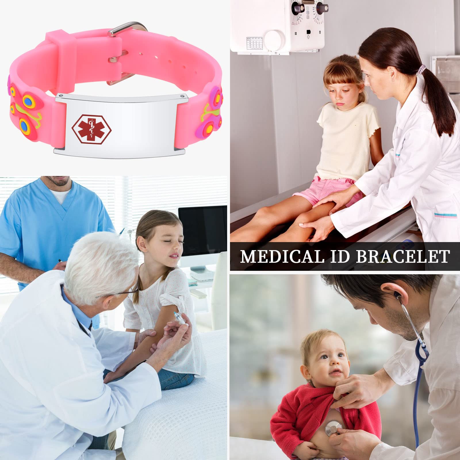 âď¸ăIn Case of Emergency BraceletsăKids medical ID bracelet features the internationally recognized medical symbol, alerting first responders, medical personnel and others to your kids medical information. We recommend that you engrave the medications that your kids are taking or are allergic to; ICE allows your family members or friends to be contacted in case your kids are in an emergency; your kids name, this helps first responders communicate with kids.