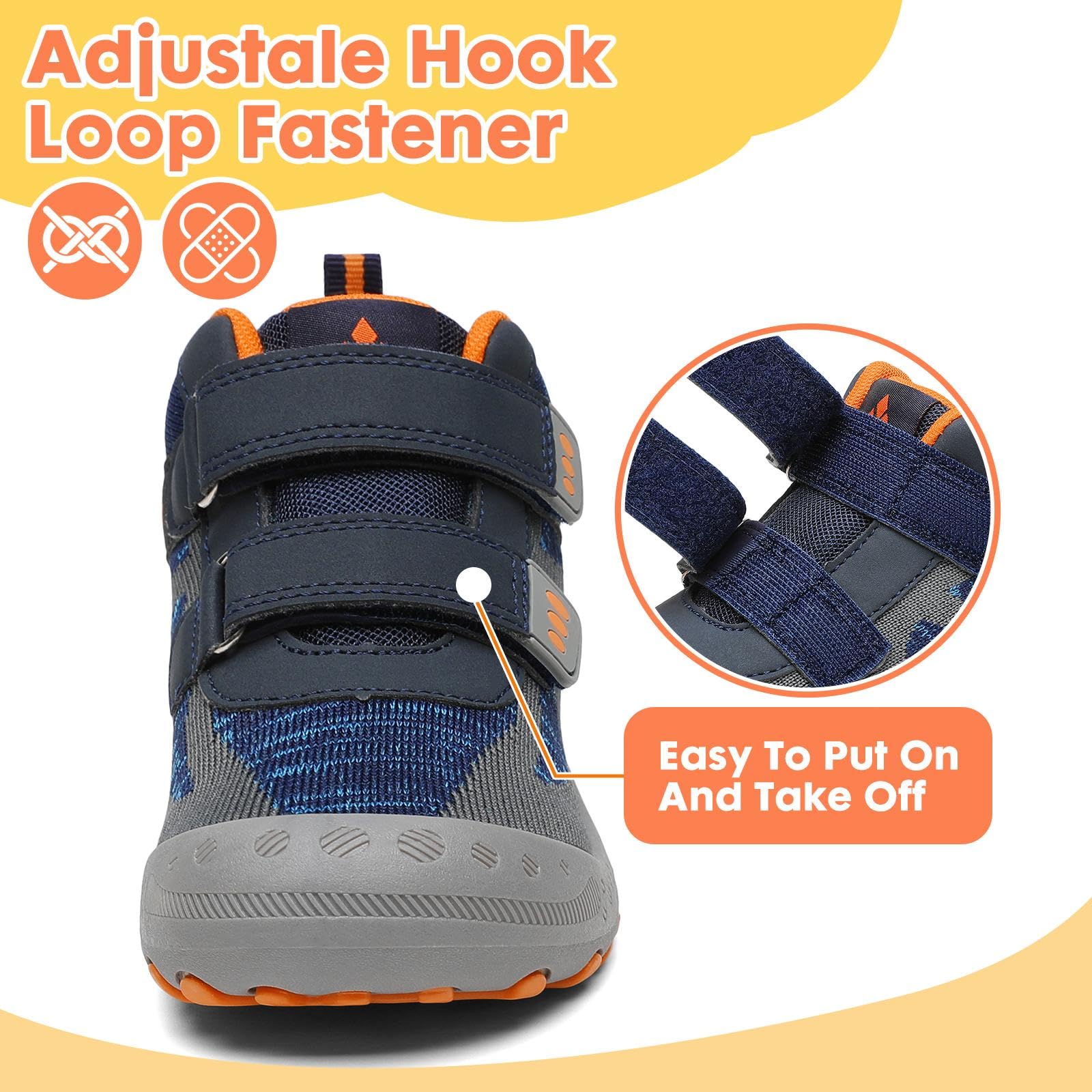 EASY ON AND OFF: Girls boys hiking shoes are designed with hook-and-loop strap and elastic adjustable buckle provides child a secure fit and easy to put on and take off.