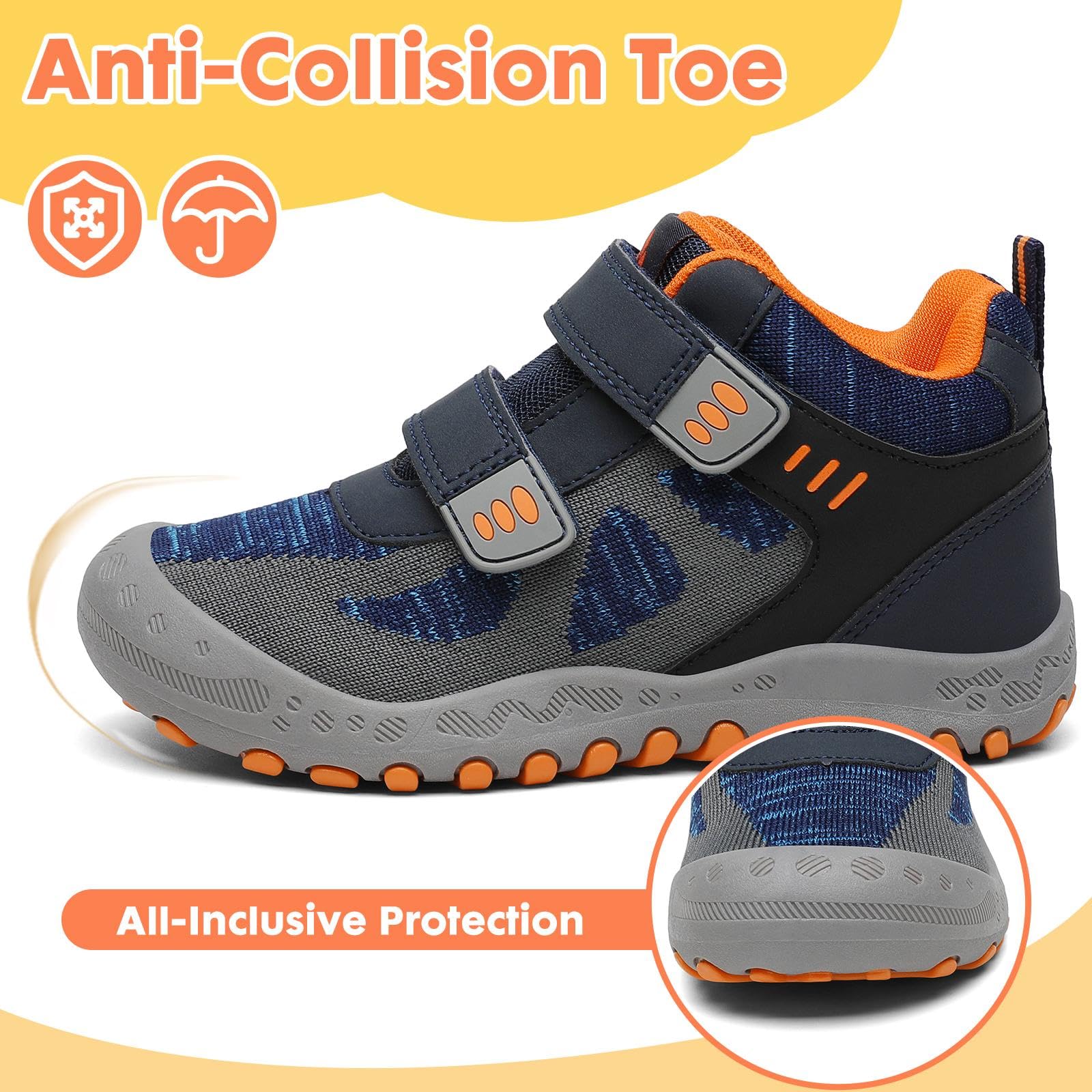 COMFORTABLE UPPER: The Vamp of kids hiking shoes are featured with high-quality PU leather and breathable mesh fabric, which keep kids feet dry and comfortable feeling.