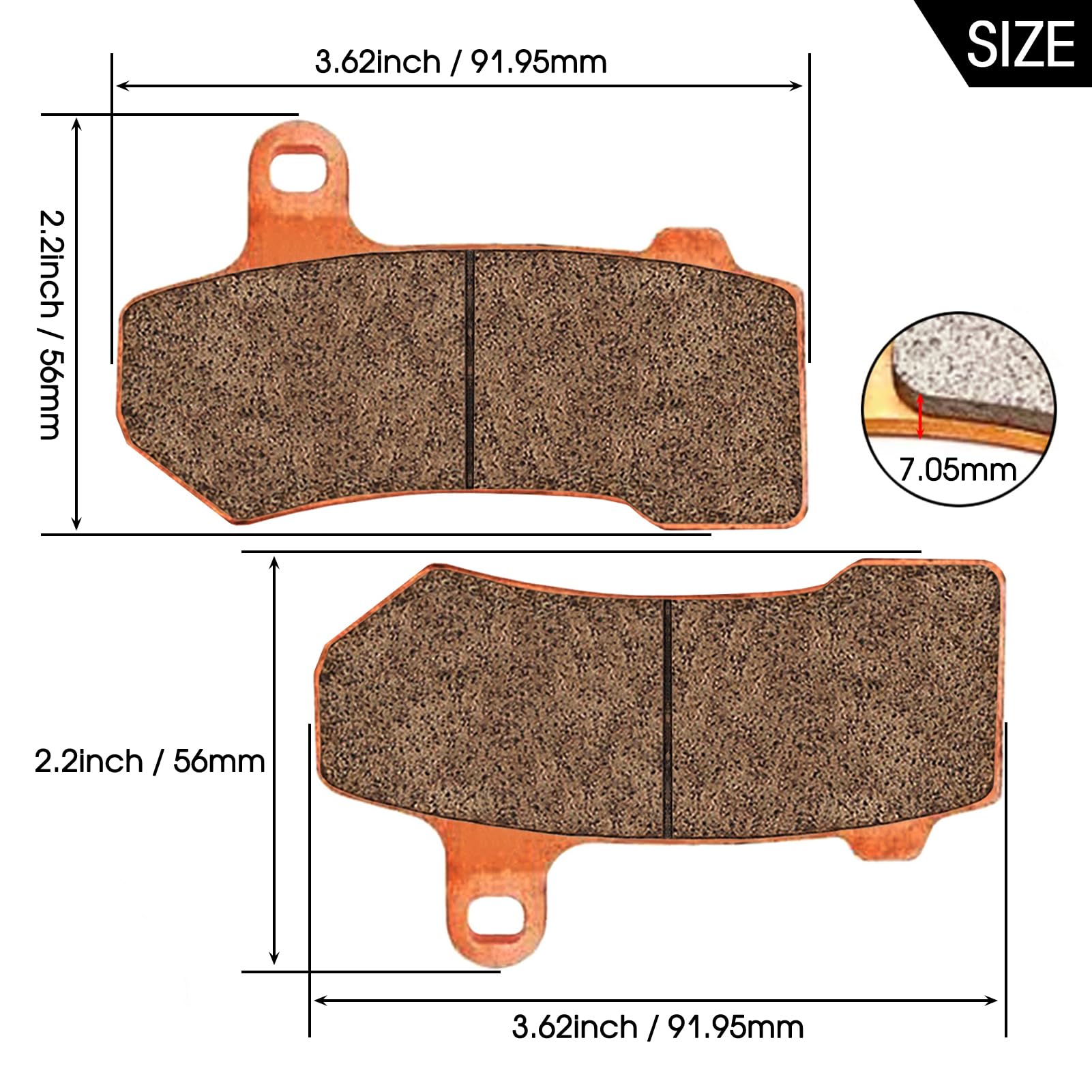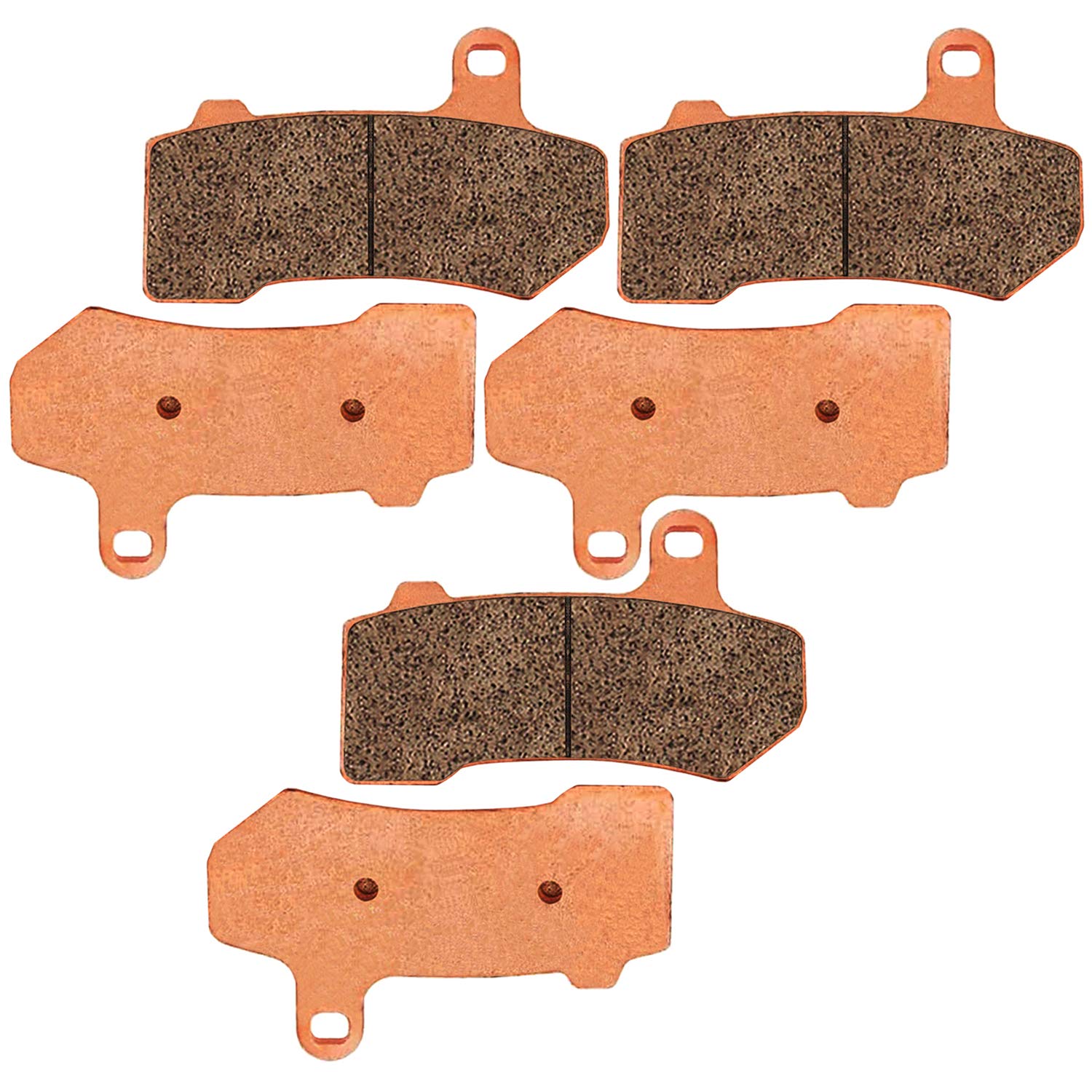 The sintered copper brake pad change kit includes 2set front and 1set rear brake pads for harley davidson,Replaces Harley Davidson OEM Part#:42850-06A 42850-06B 42897-06A 42897-08 41854-08 41852-08