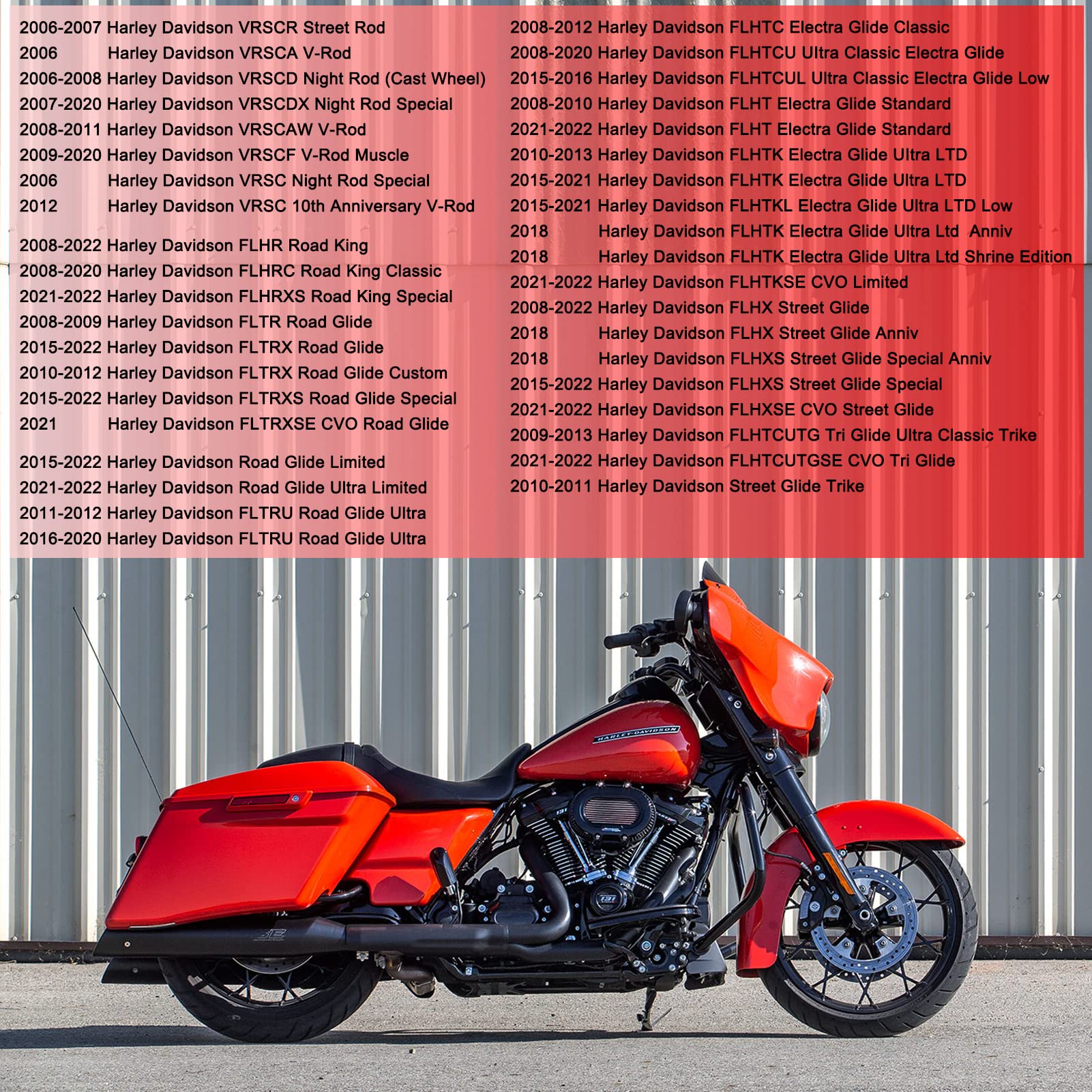 Fitment: Brake pads for Harley Davidson Ultra Limited FLHTK 2014-2020 + V-Rod VRSC 2005-2017 + Tri Glide FLHTCUTG 2008-2013 2019-2020 + Street Rod VRSCR 2006-2007 + Night Rod VRSCD 2006-2011