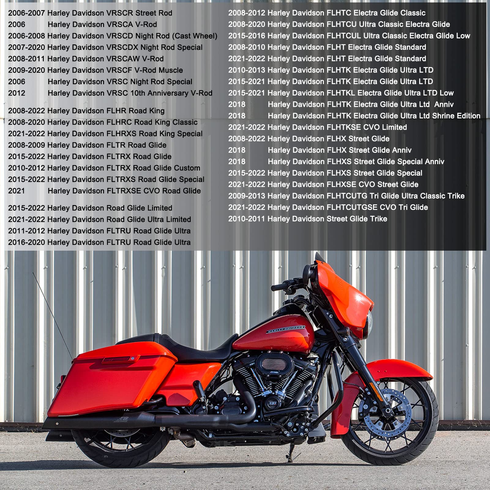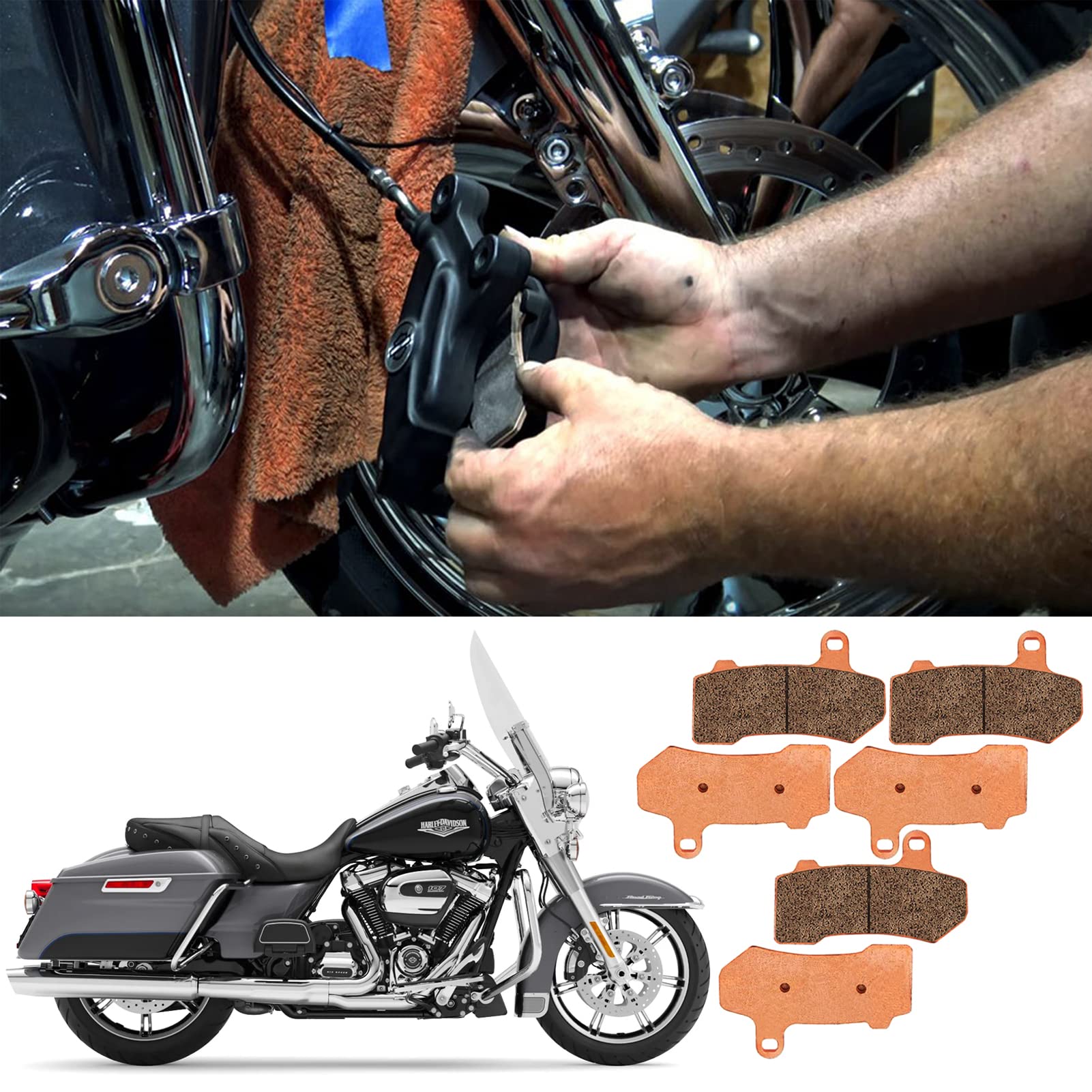 Fitment: Brake pads for Harley Davidson Electra Glide FLHT 2008-2020 + Street Glide FLHX 2008-2020 + Road King FLHR 2008-2020 + Road Glide FLTR 2008-2020