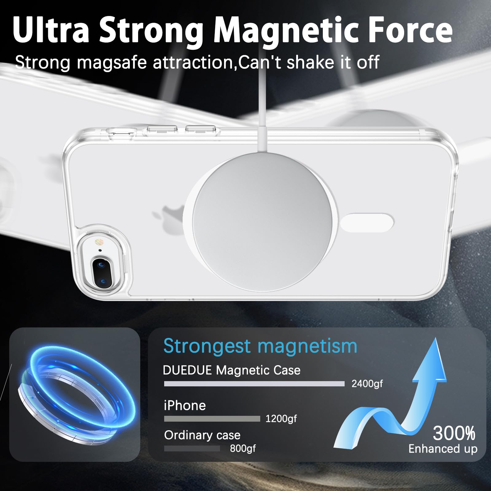Compatible with Magsafe: Particularly designed for iPhone 8 plus/iPhone 7 plus, the phone case is compatible with Magsafe chargers and other Qi Wireless chargers without signal influence. Built-in strong magnet, the iPhone 8 Plus/7 Plus phone case will not fall off no matter how it rotates with super adsorption capacity