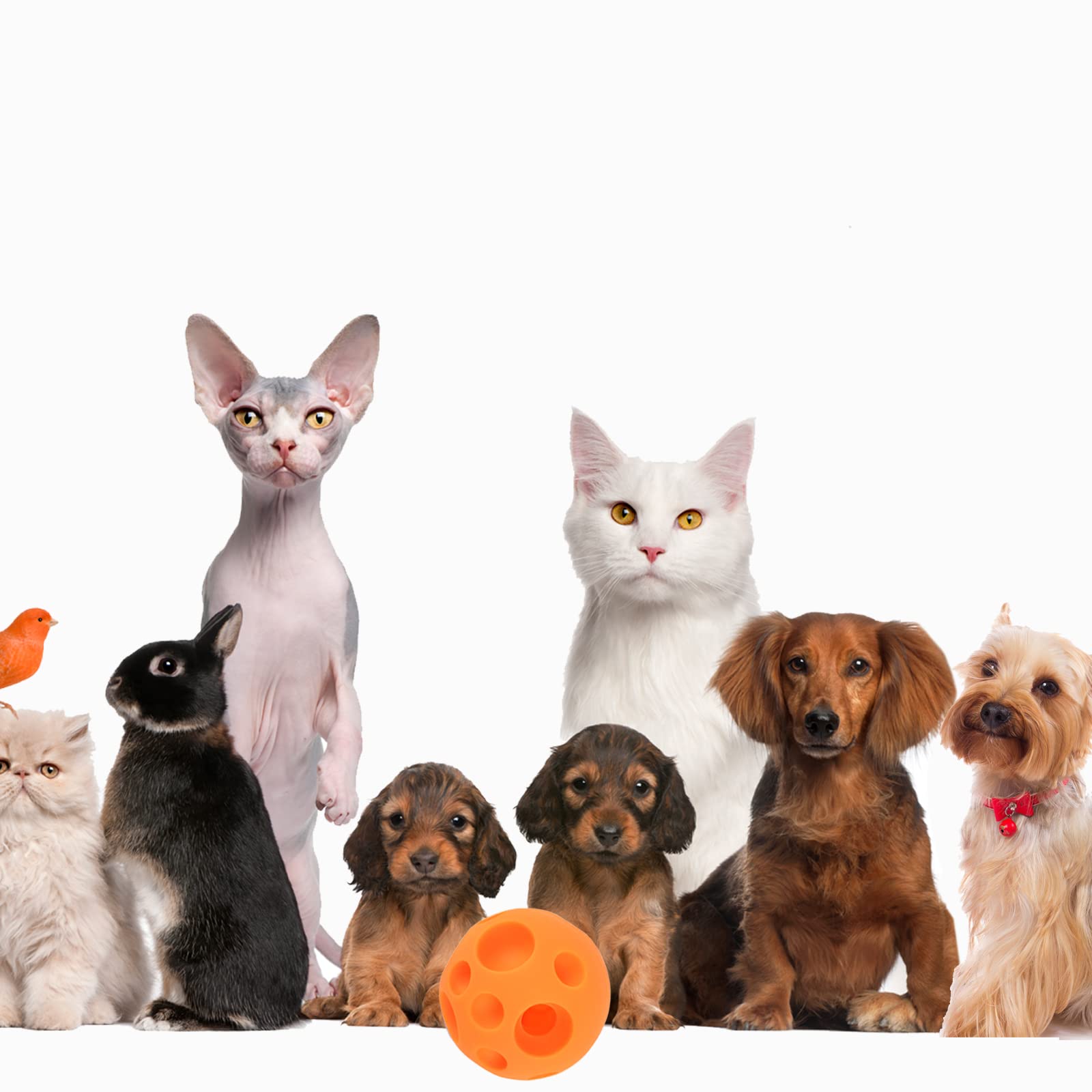 Attention, Please!!! NOT CHEW BALL! When your dog has finished, please take the toy away and clean it Dogs Treats Dispenser Ball Color: Orange Product Size: 5 inches Pet toys Ball is a fun alternative to slow feed dog bowls that promote a healthy lifestyle for your pet healthy feeding and kill boredom time. Leak Holes in Different Sizes, fill with your dog's favorite treats, promote active and healthy slow feeding habit Interactive treat ball toy for cats puppy dogs, Fun toy ball that keeps your dog mentally and physically stimulated great for toss, fetch play and developing healthy eating habits ideal for small medium dogs