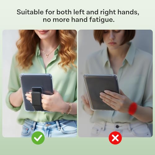 【Ambidextrous Comfort-First Hand Strap】Prevent hand fatigue! The ergonomic strap provides a secure yet gentle grip, protecting your e-reader from accidental drops. Adapts naturally to your hand position, whether reading upright in bed or sideways on the couch. Centered design ensures equal comfort for left- and right-handed users.