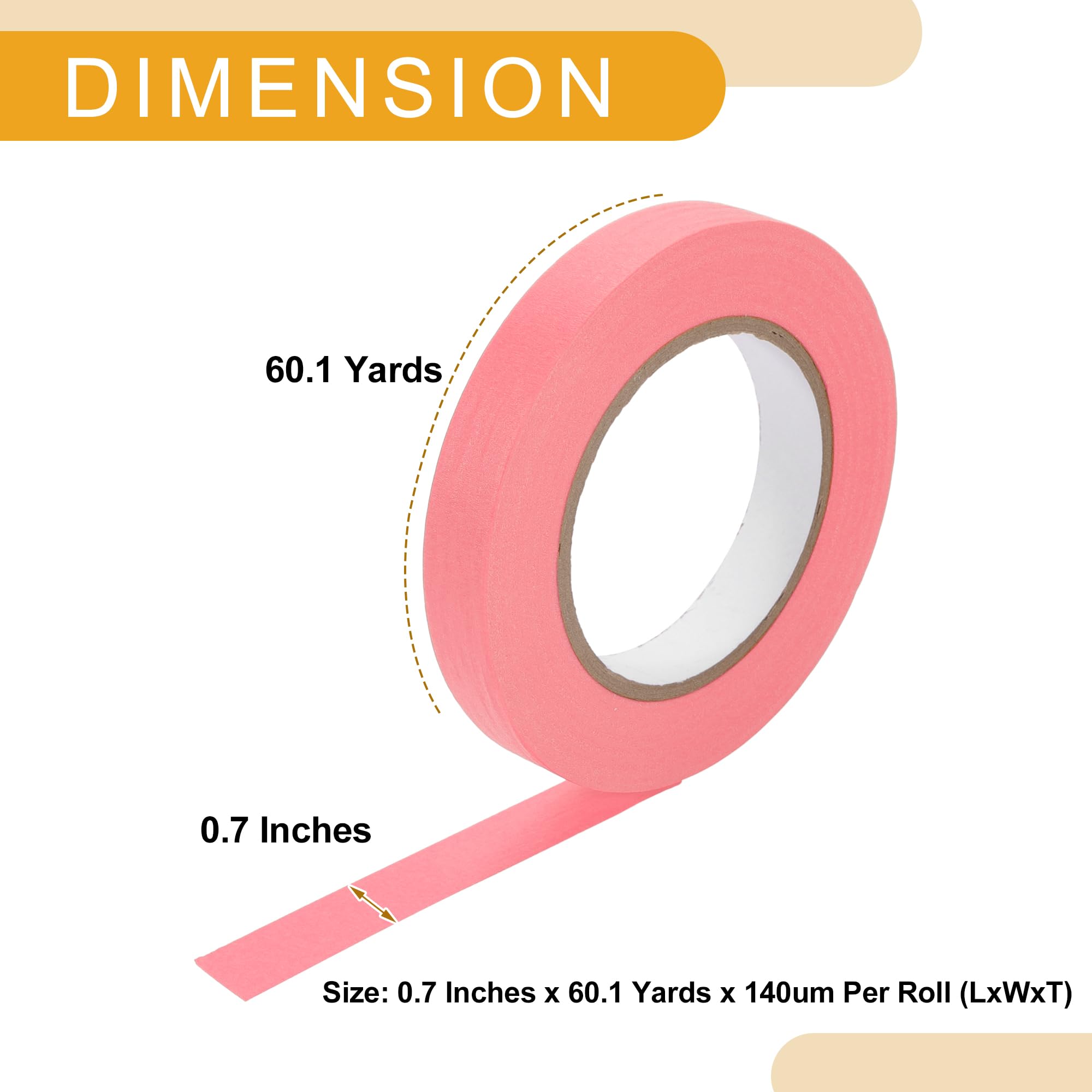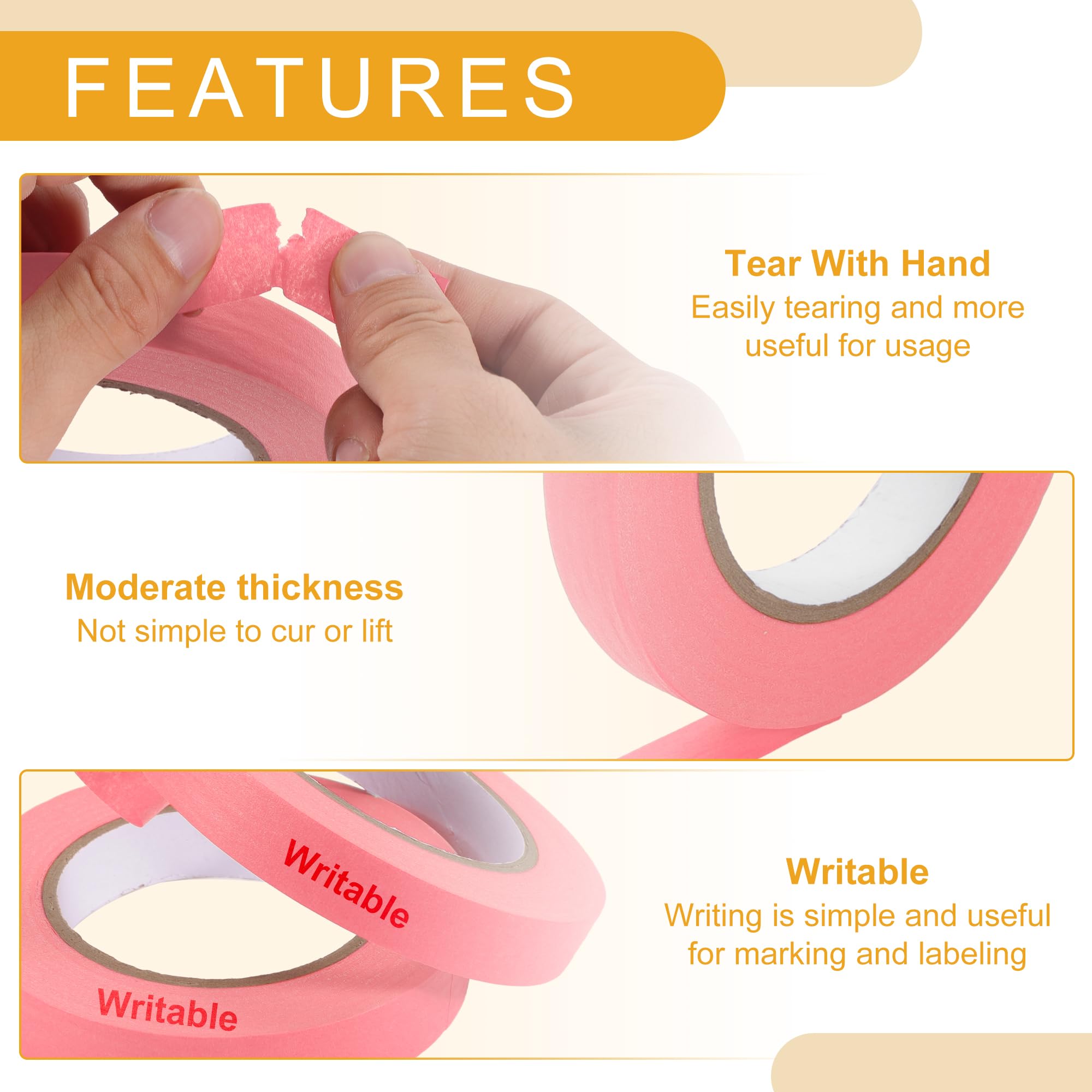 [PRODUCT FUNCTION] The masking tape uses a good glue ratio to achieve the correct viscosity, which can stay indoors for about 14 days, suitable for kinds of surfaces, such as plastic, glass, paper, whiteboard, painted walls, and cars.