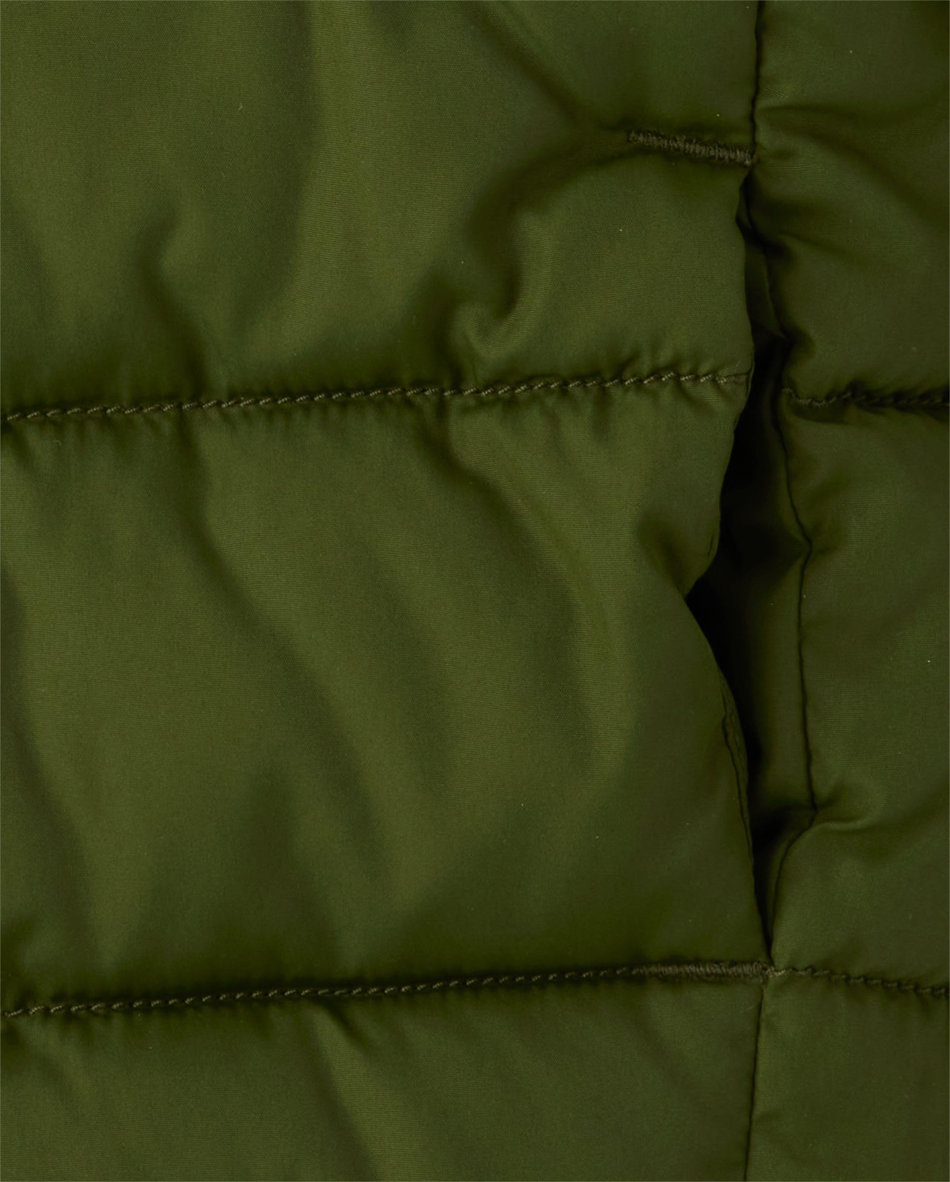 DESIGN: Attached hood, quilted body, long sleeves, elasticized sleeve cuffs
