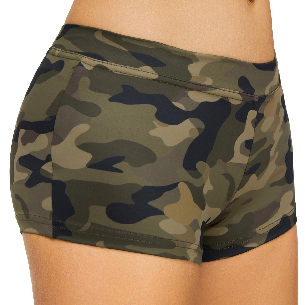 Premium Fabric & Durability: Made from durable polyester and spandex blend, these athletic shorts for women retain shape and vibrant camo colors, providing lasting performance and comfort.