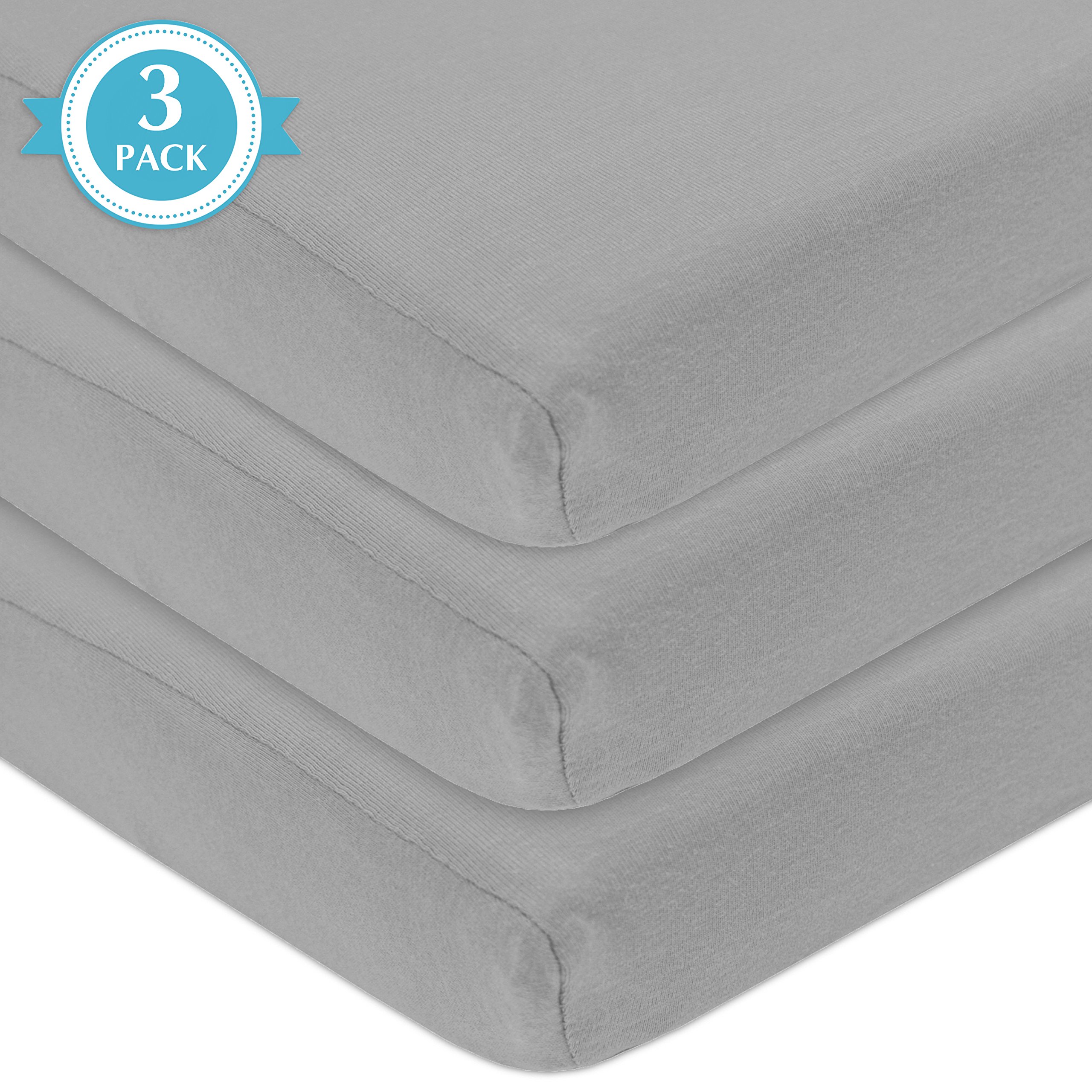 Perfect Fit & Secure Coverage: Made from 100% Cotton Jersey and measuring 24” x 38” with a depth of 5 inches, our mini crib sheets snugly fit most standard pack and play mattresses and mini crib mattresses