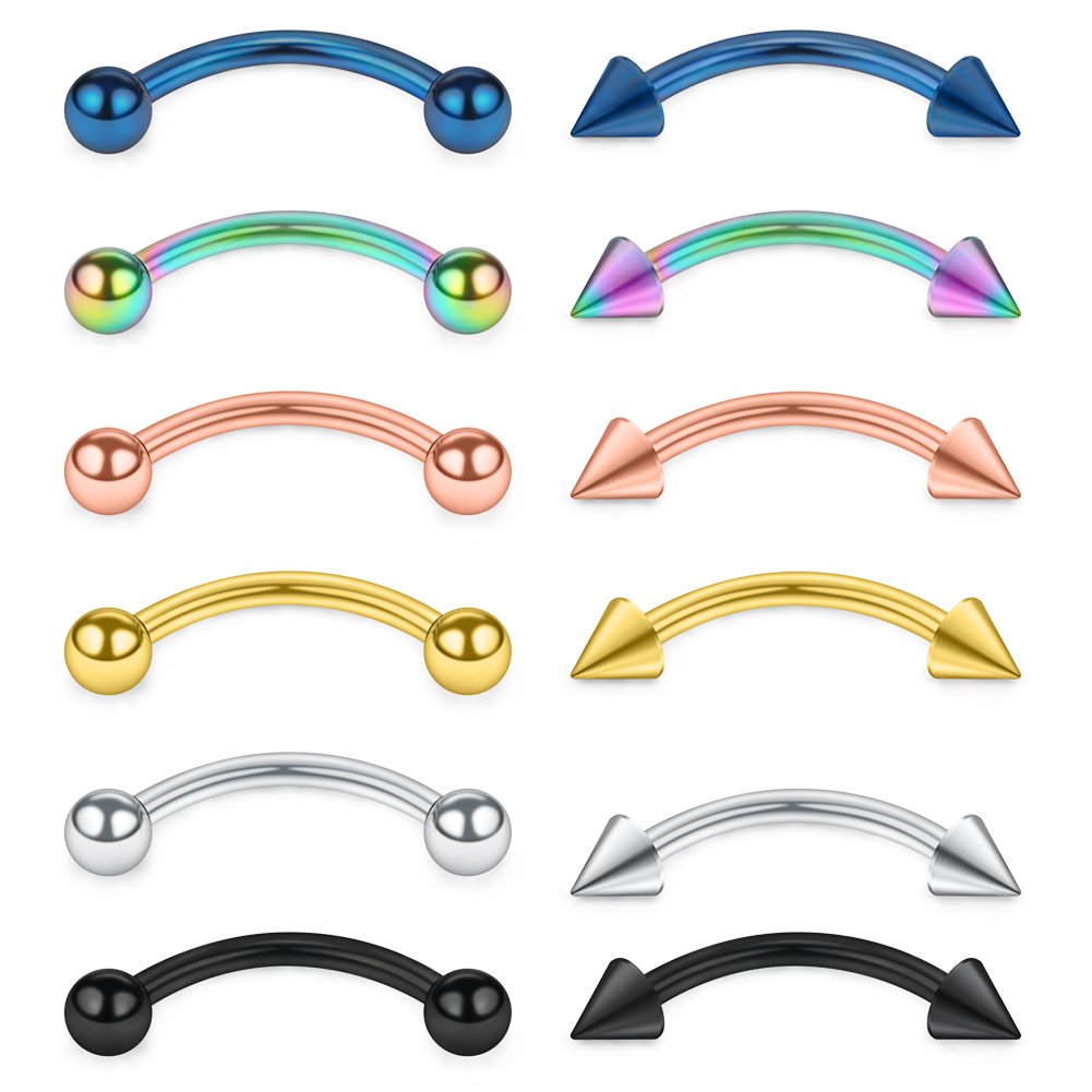 Includes 12PCS Curved Eyebrow Barbell Rings,also Can use for Tragus,Helix,Lip,Hide Septum Barbell and so on.