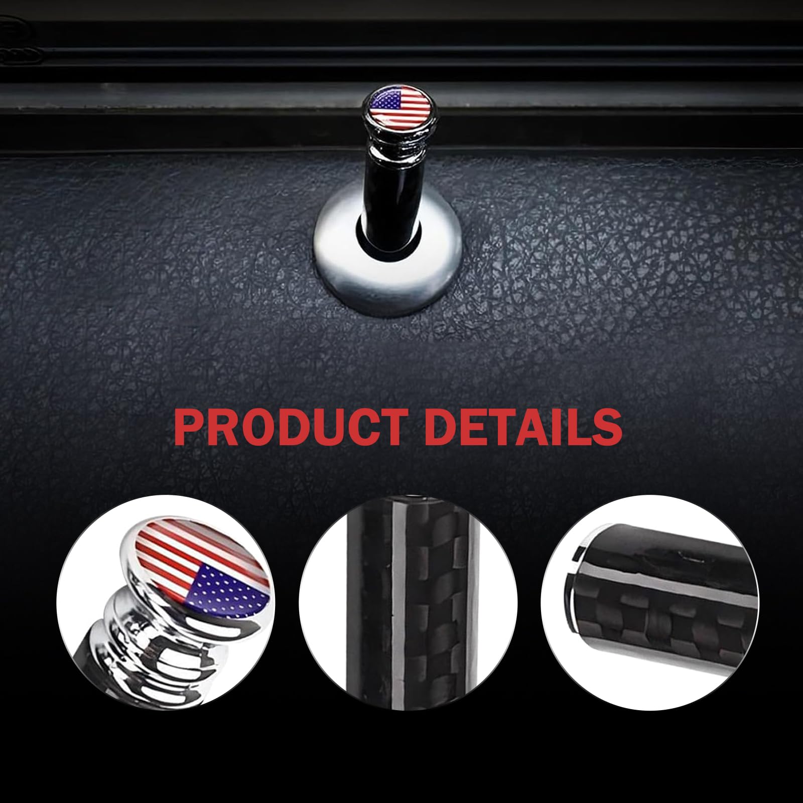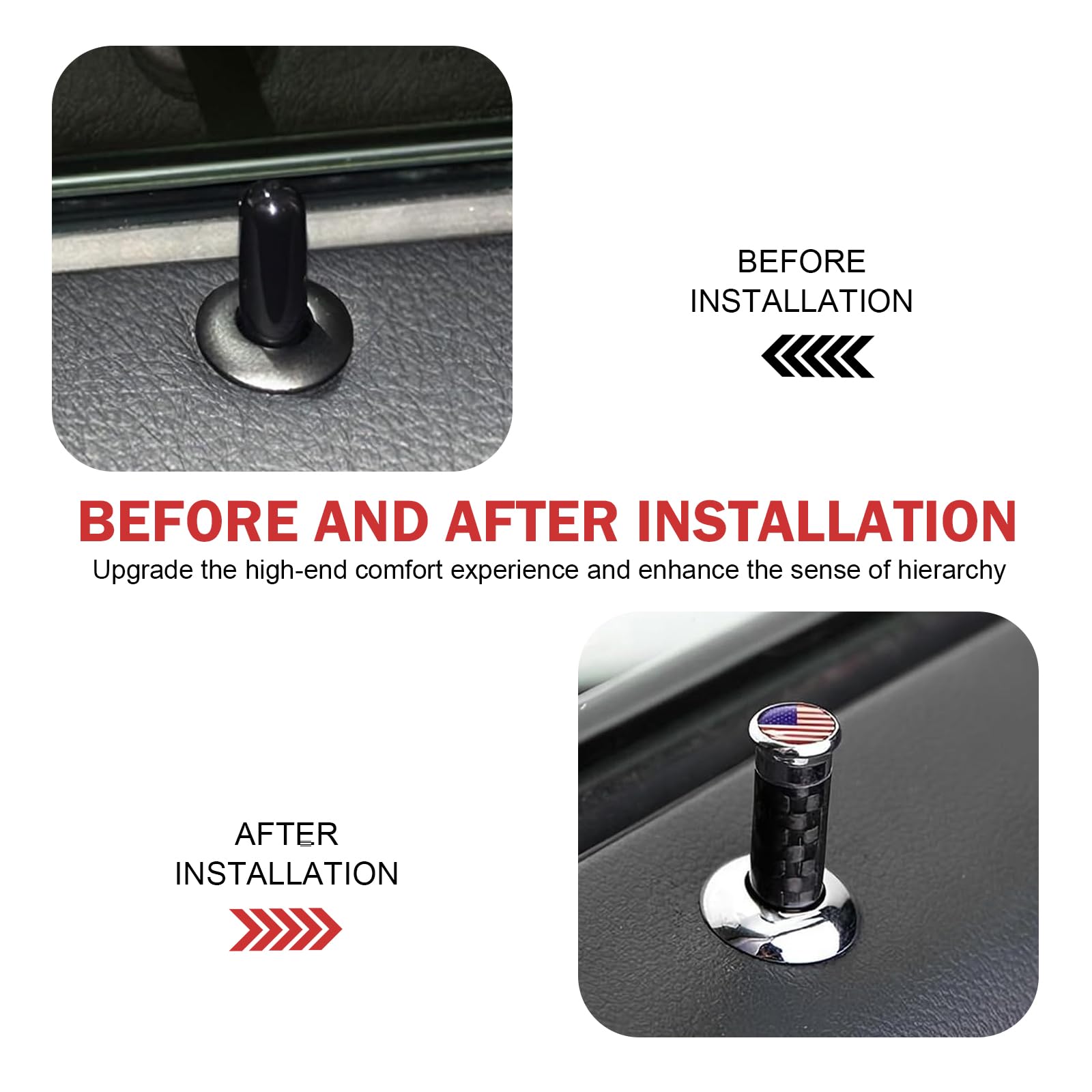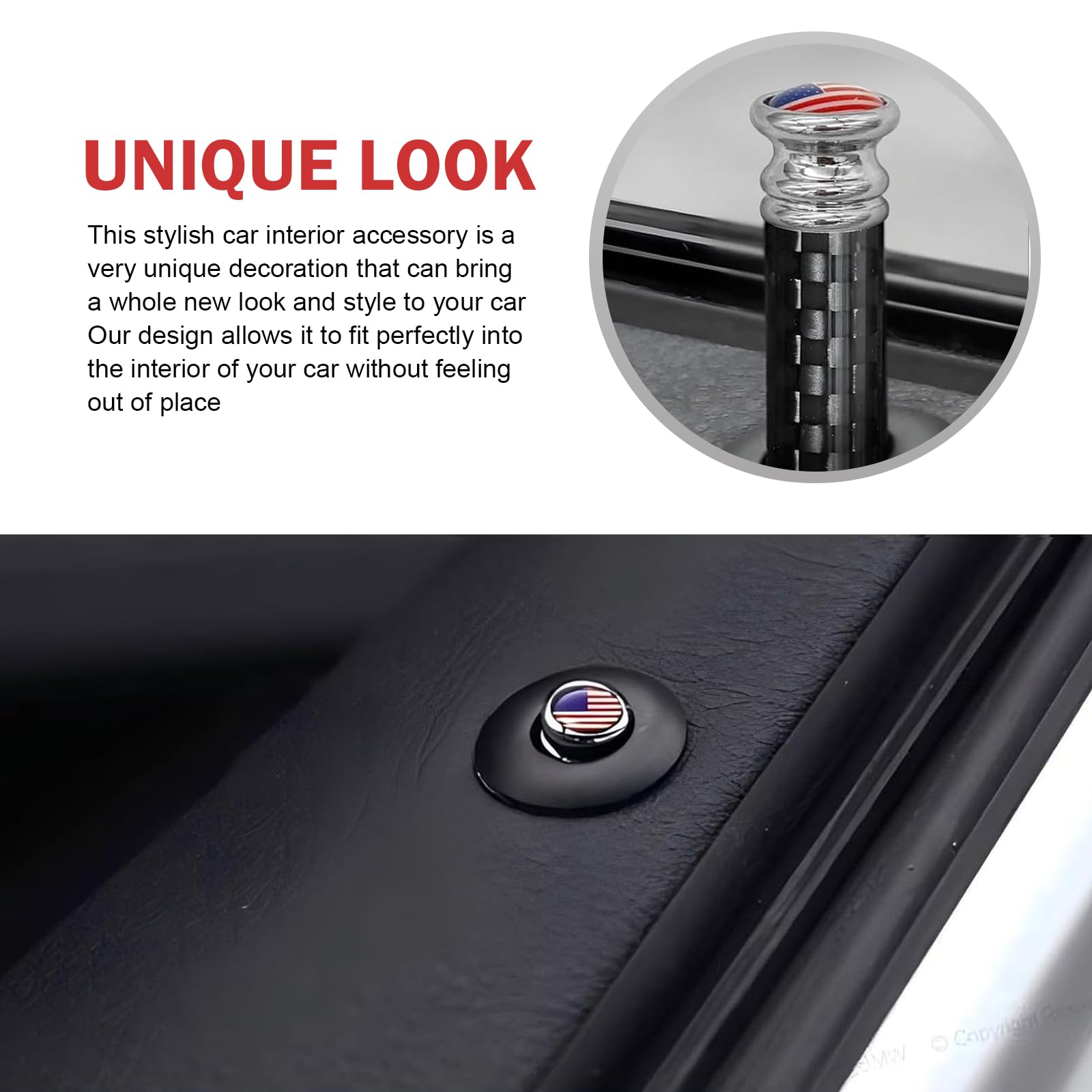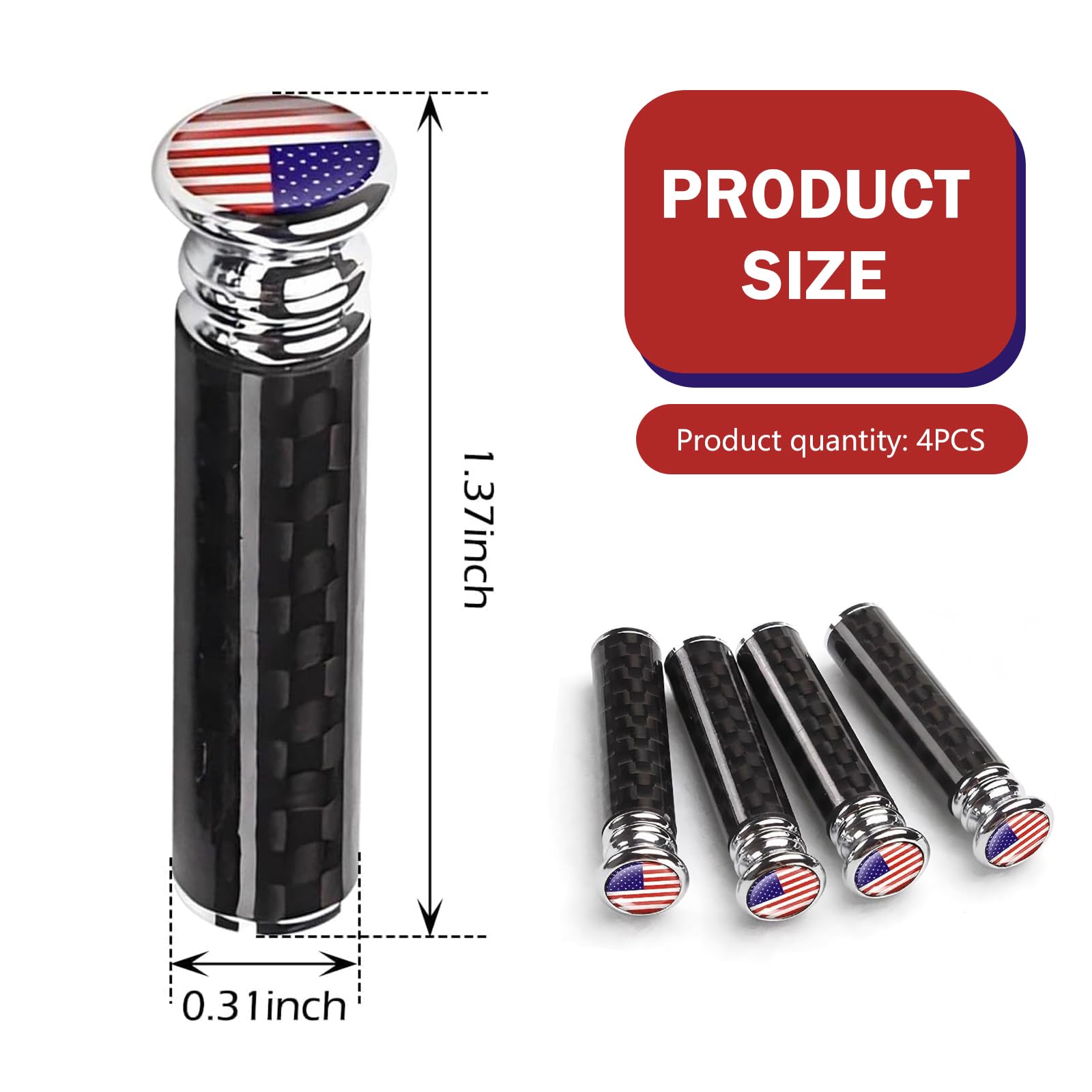 Name: Door Lock Knob (4-Pack) Material: Carbon Fiber and Copper Dimensions: 1.37 x 0.31 inches Instructions: Simply unscrew the old door lock cover and tighten it. Compatible with: 95% of vehicles with door locks, including trucks, SUVs, and pickup trucks. Note: Please measure your vehicle's lock pin before purchasing to ensure compatibility.