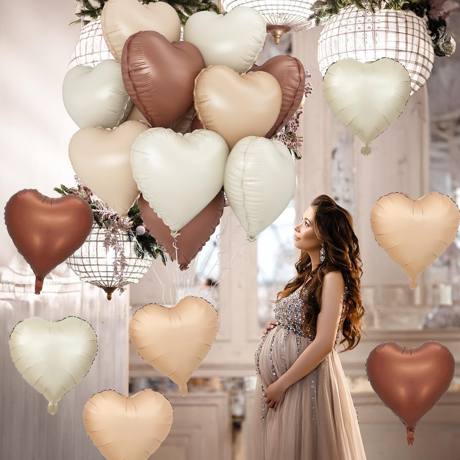 Easy to Use: The beige brown heart foil balloons can inflate with helium or air, can be self-sealed. It is recommended to inflate to 85%-90% to prevent the balloon from bursting