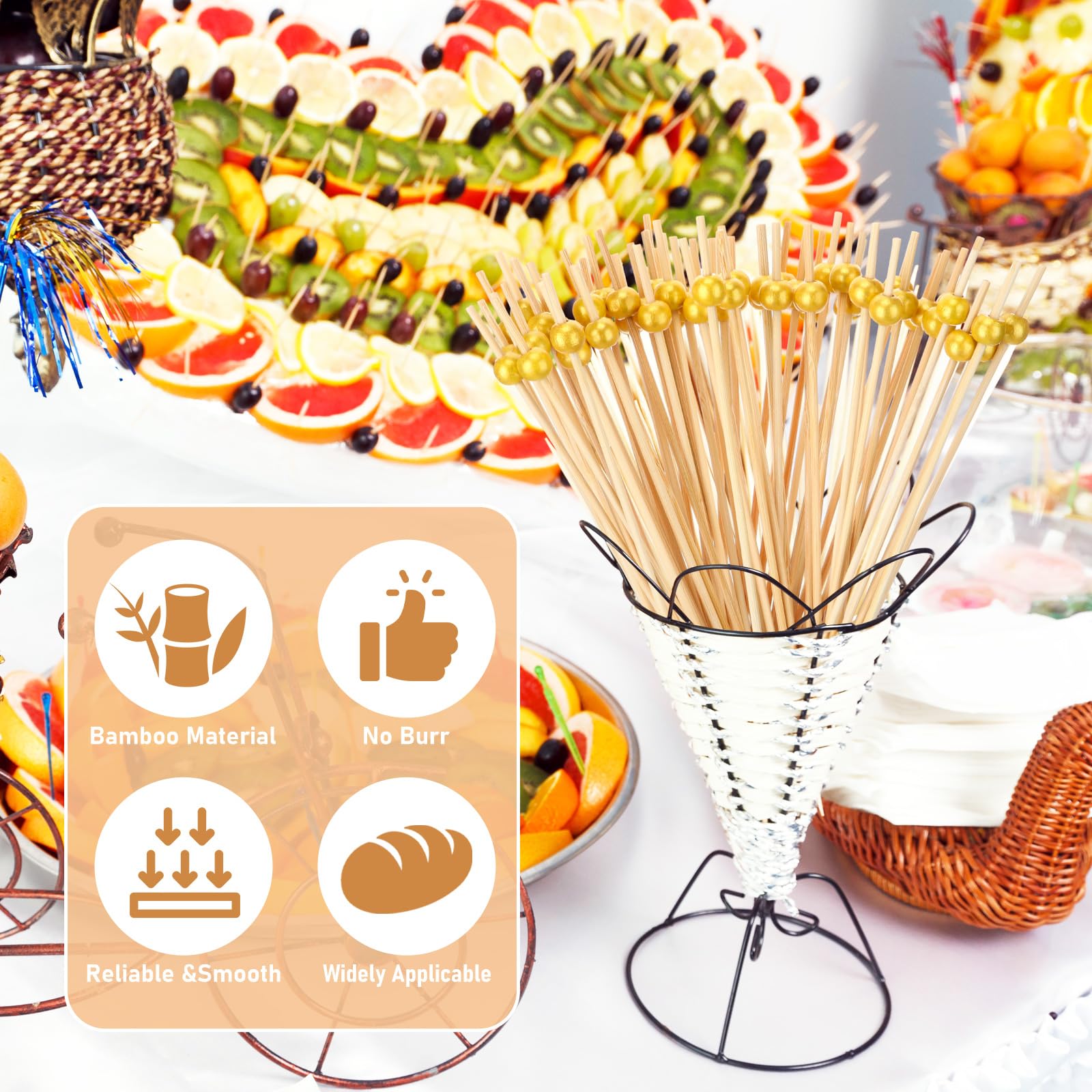 Elegant Party Toothpicks for Appetizers: not just functional, our bamboo skewers boast an elegant design that adds a certain charm to any dish; Featuring fancy Gold pearl toothpicks, cocktail toothpicks, and gold toothpicks for appetizers, our appetizer picks add a touch of sophistication to your presentation