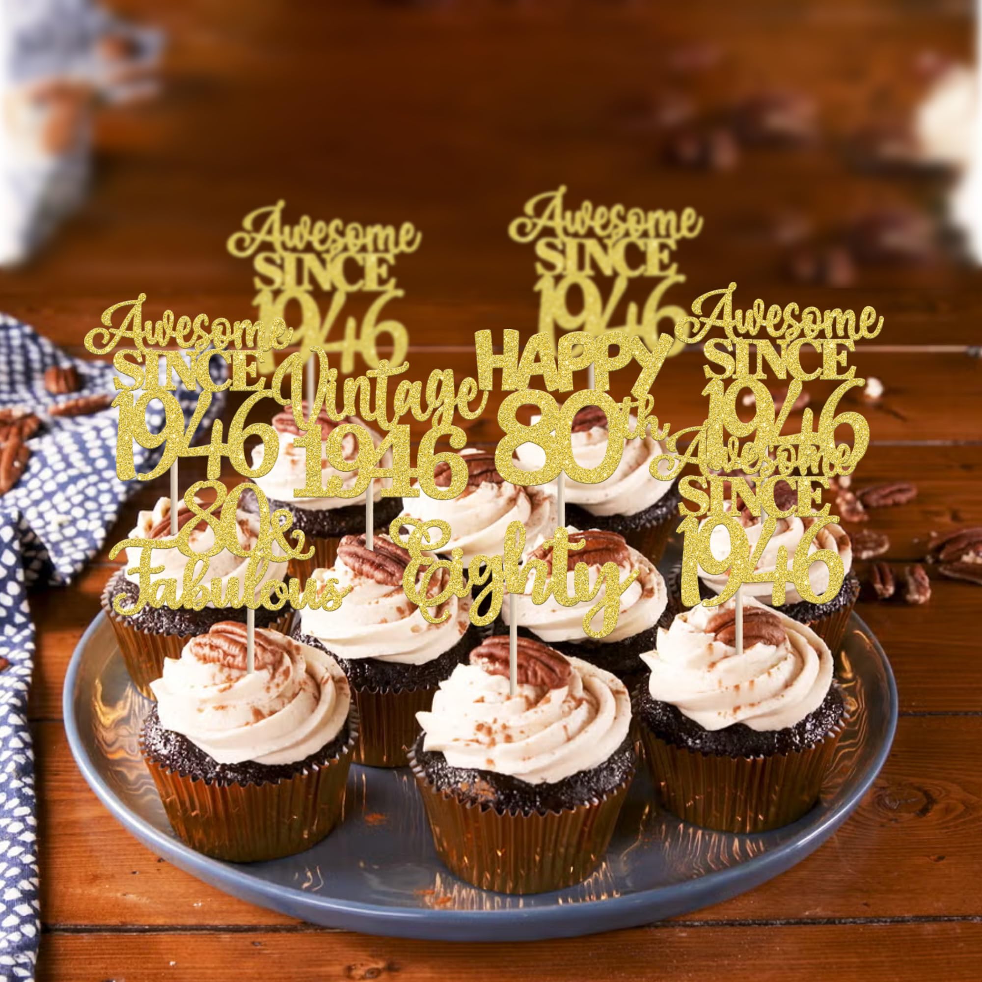 Wide Usages ! These vintage 1945 cupcake toppers are perfect for vintage 1945 theme party, 80th birthday theme party, 80th wedding anniversary theme party,cheers to 80 years theme party cupcake decorations, they can make your cupcake more attractive and bring the fun to your party.You can also apply them for ice cream, fruits, cookies and other desserts