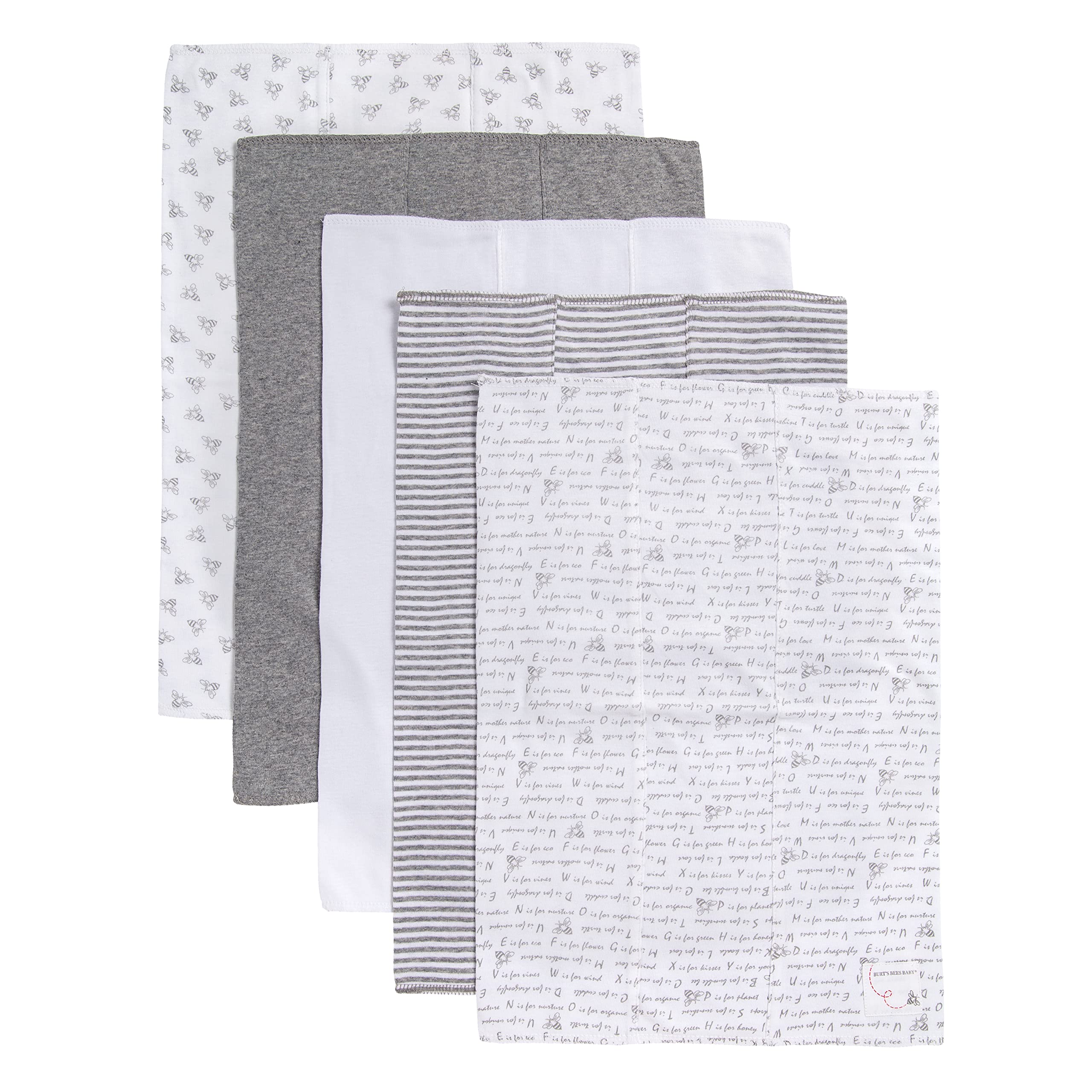 Burt's Bees Baby Unisex Baby Gift Set - Crib Sheet, Changing Pad Cover & Burp Cloths, 100% Organic Cotton Essentials Bundle