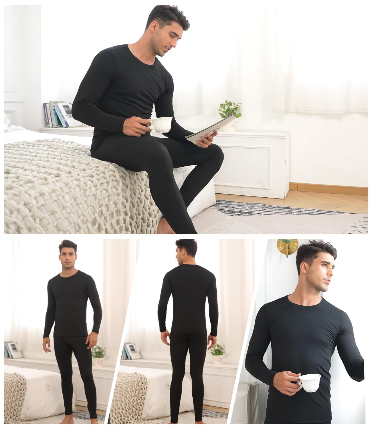 【Keeps you warm without disrupting your style】The Two pieces set top and bottom thermal wear that sits perfectly under your clothing without adding any bulk. making them easy to lay under a pair of slim fit jeans. Provides a lightweight layer that feels soft under the skin, allows full mobility and keeps you warm without disrupting your style.