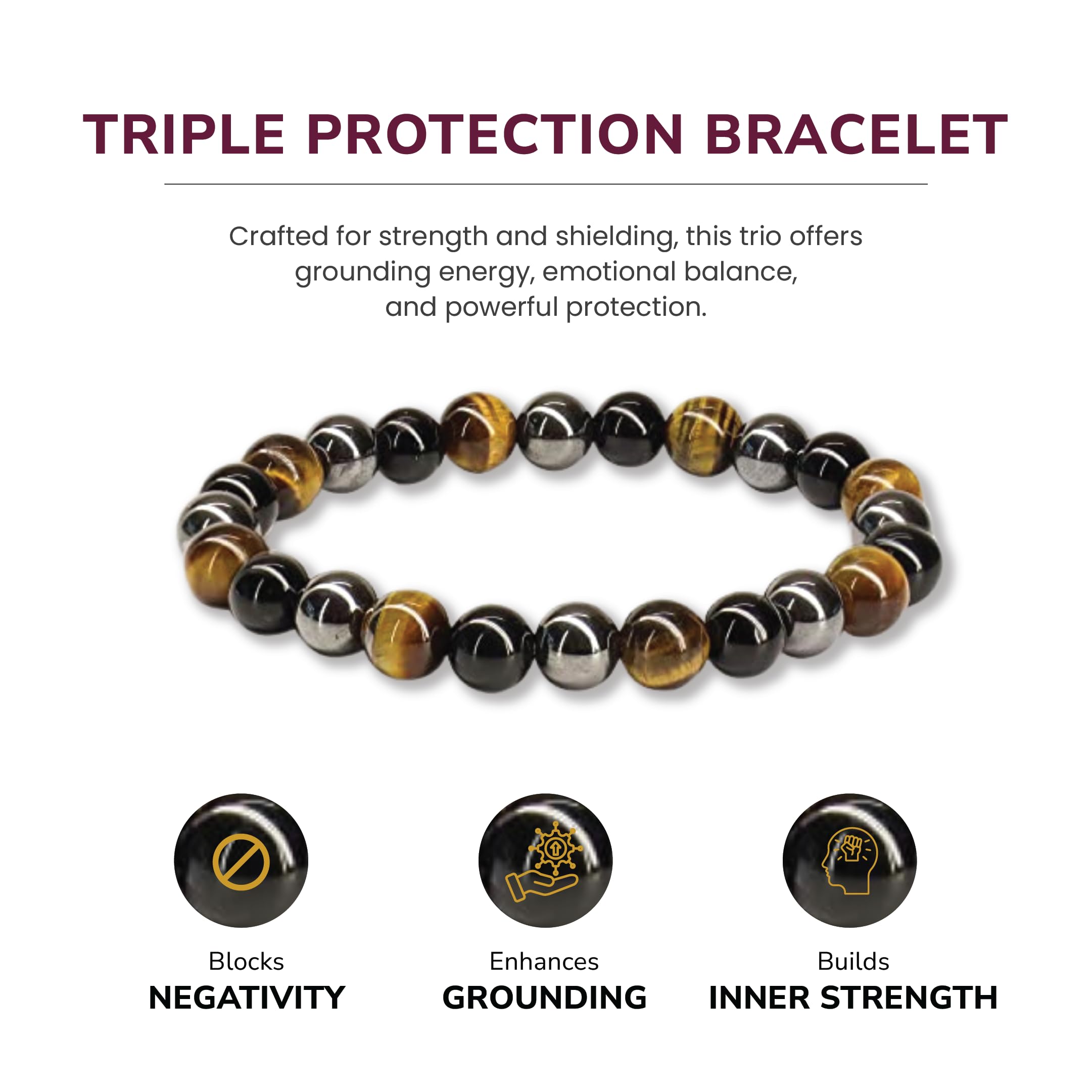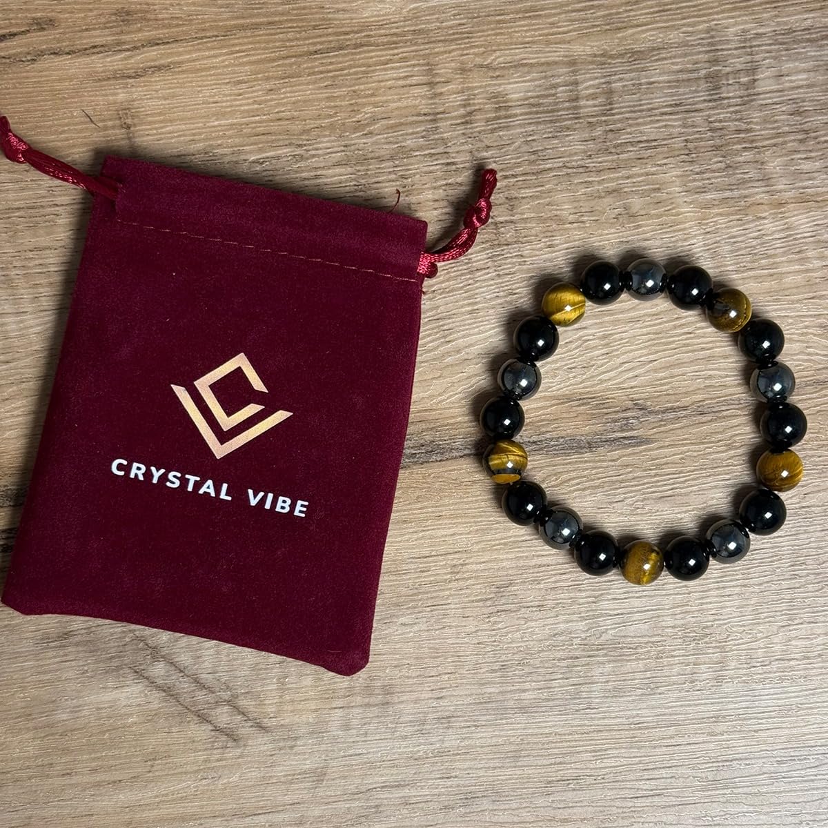 β PREMIUM MATERIAL - Crystal Vibe triple protection bracelet is of high-quality material to support long-term use, suitable for both men women, lightweight & easy to wear. Natural stones Black Obsidian, Hematite and Tiger's Eye has been used to make this Protection Bracelet that has a long-lasting charm and gives distinct personality.