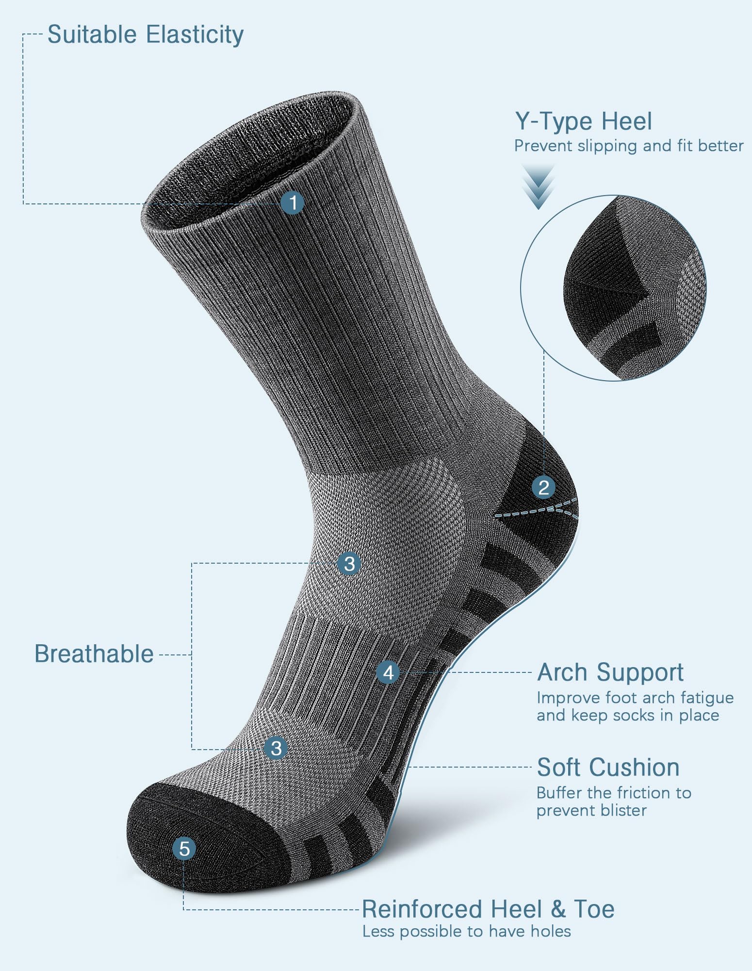 [SOFT & BREATHABLE RUNNING SOCKS]: Made of superior fabric, with air permeability and moisture and wicking function, making our running socks breathable and comfortable. Even though you wear them for training, running and just walking, Throughout the day, you will still feel your feet dry and odorless without stuffy feet.