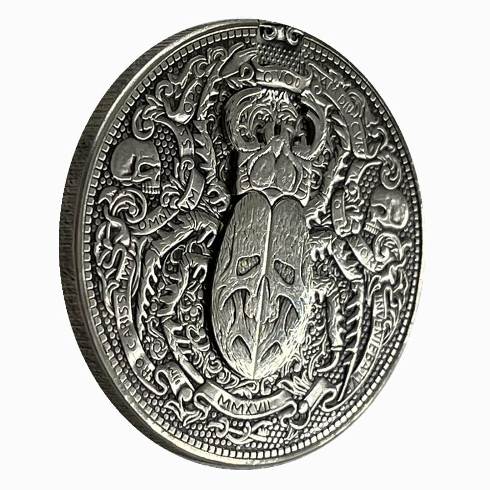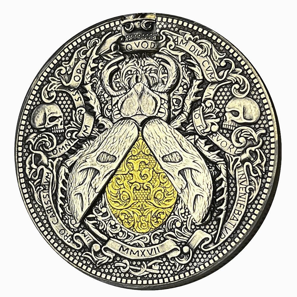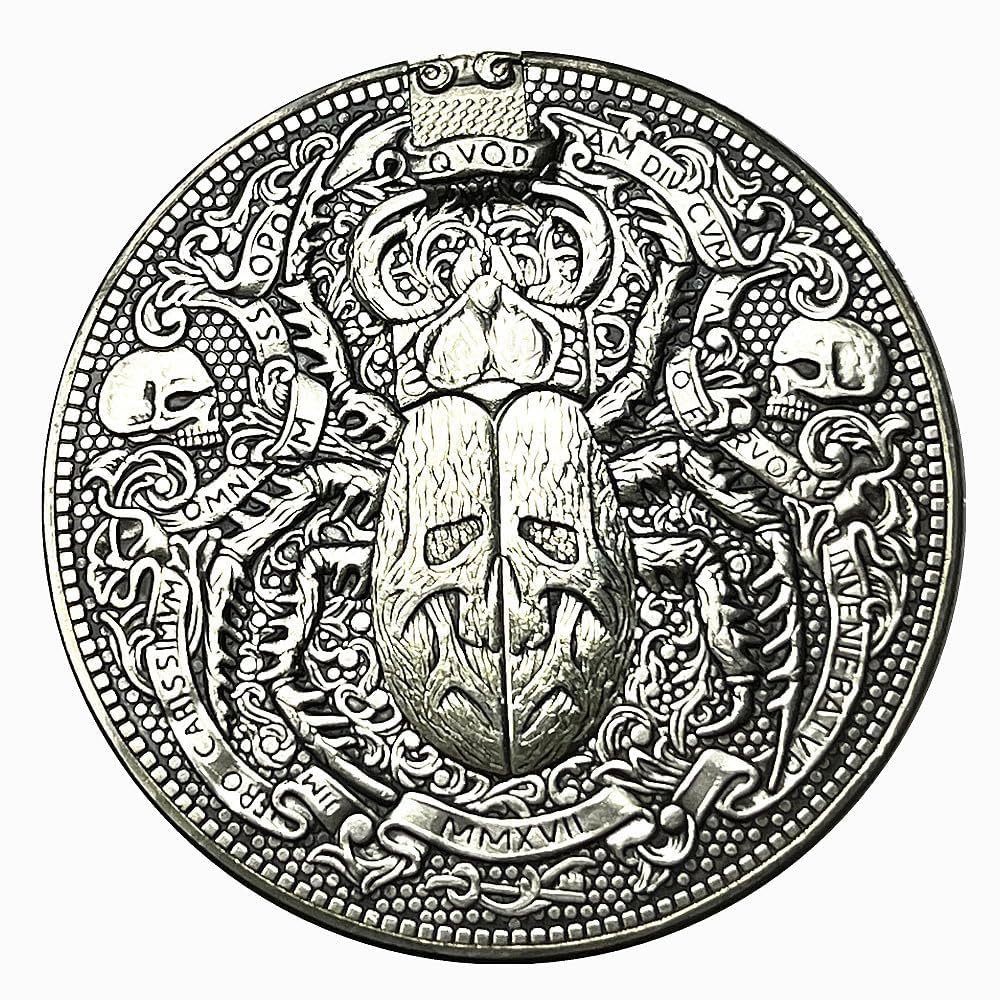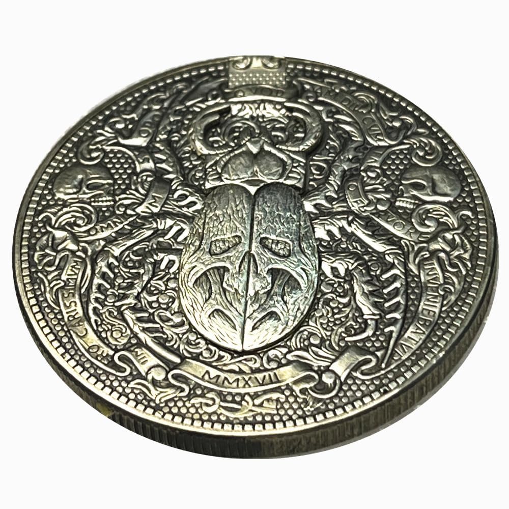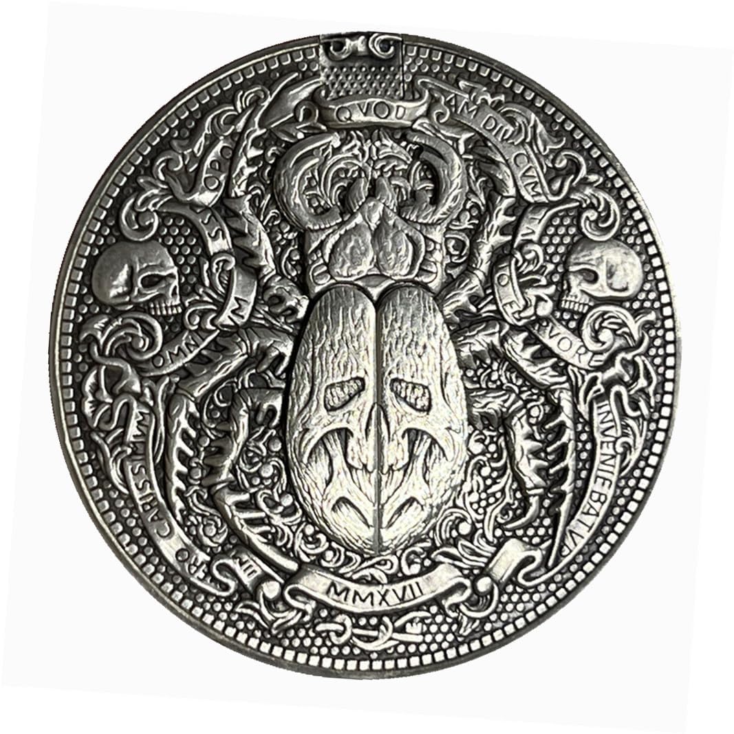 This Scarab Movable Mechanism Coin is an eye-catching. The design of the scarab beetle has a movable mechanism that allows the wings to unfold. Perfect for those who love unique and quirky jewelry.