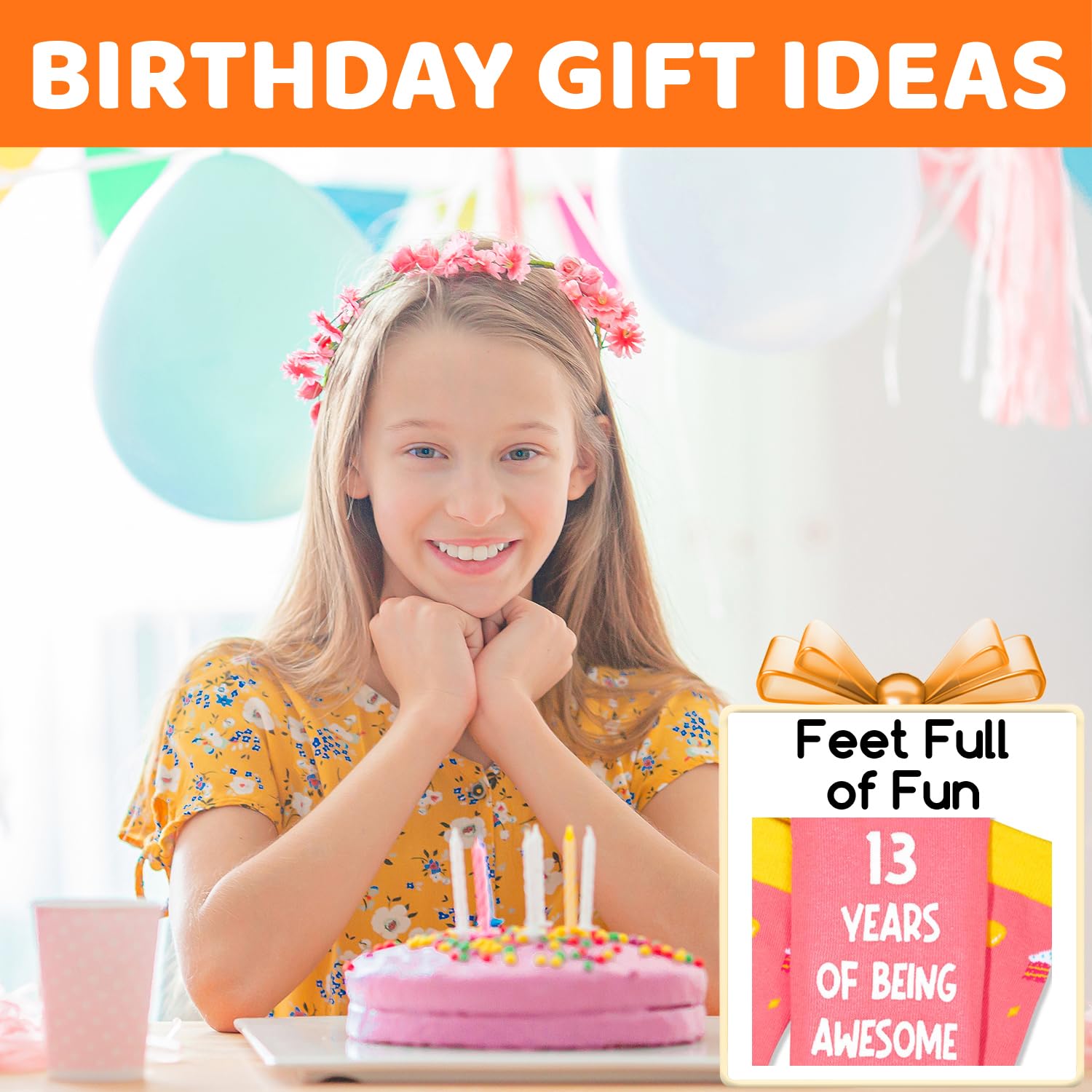 13TH BIRTHDAY GIFTS FOR GRIL: These pink "HAPPY BIRTHDAY TO ME, 13 YEARS OF BEING AWESOME" socks are perfect for teen girls.
