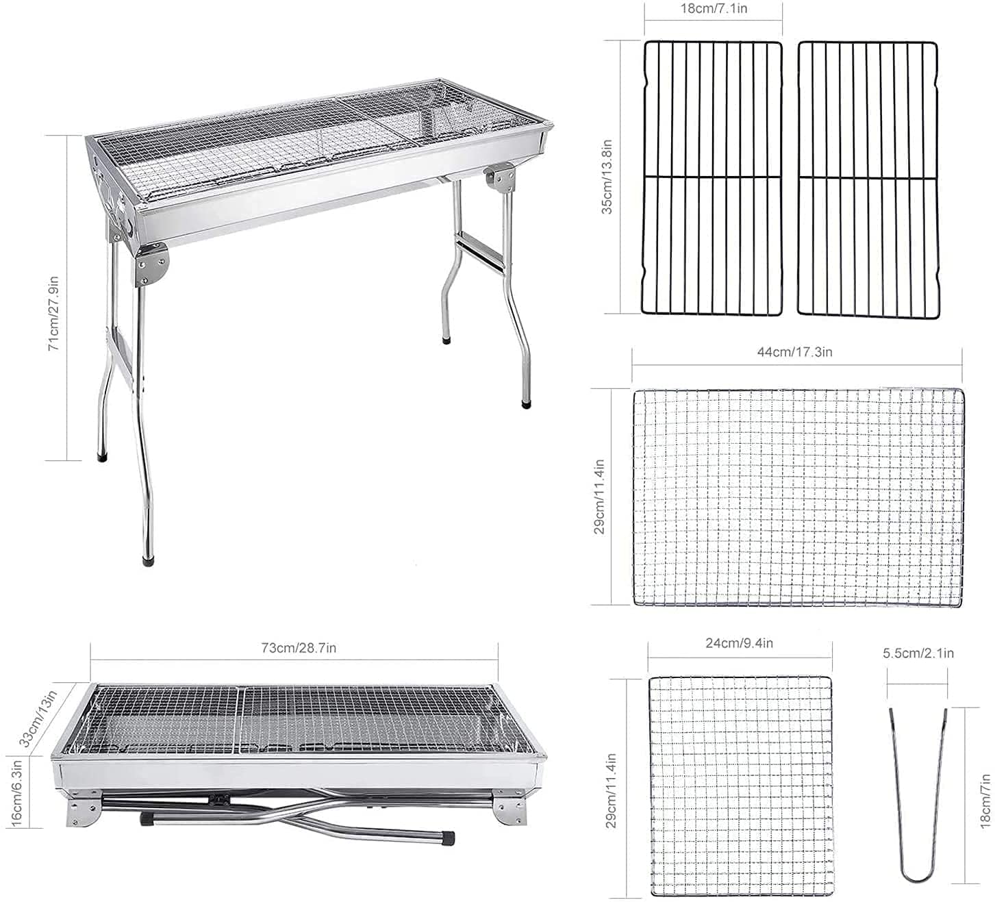 【Healthy & Premium Quality】: made of rust-resistant stainless steel for years of worry-free use. Heat-resistant and not easy to be deformed. Safe and healthy and non-toxic smoke. Included with the grill is small and large barbecue wire mesh panels meeting all you need. When using the charcoal grill, if you put a layer of tin foil on the charcoal trough, this will maximize extend the life of the grill.