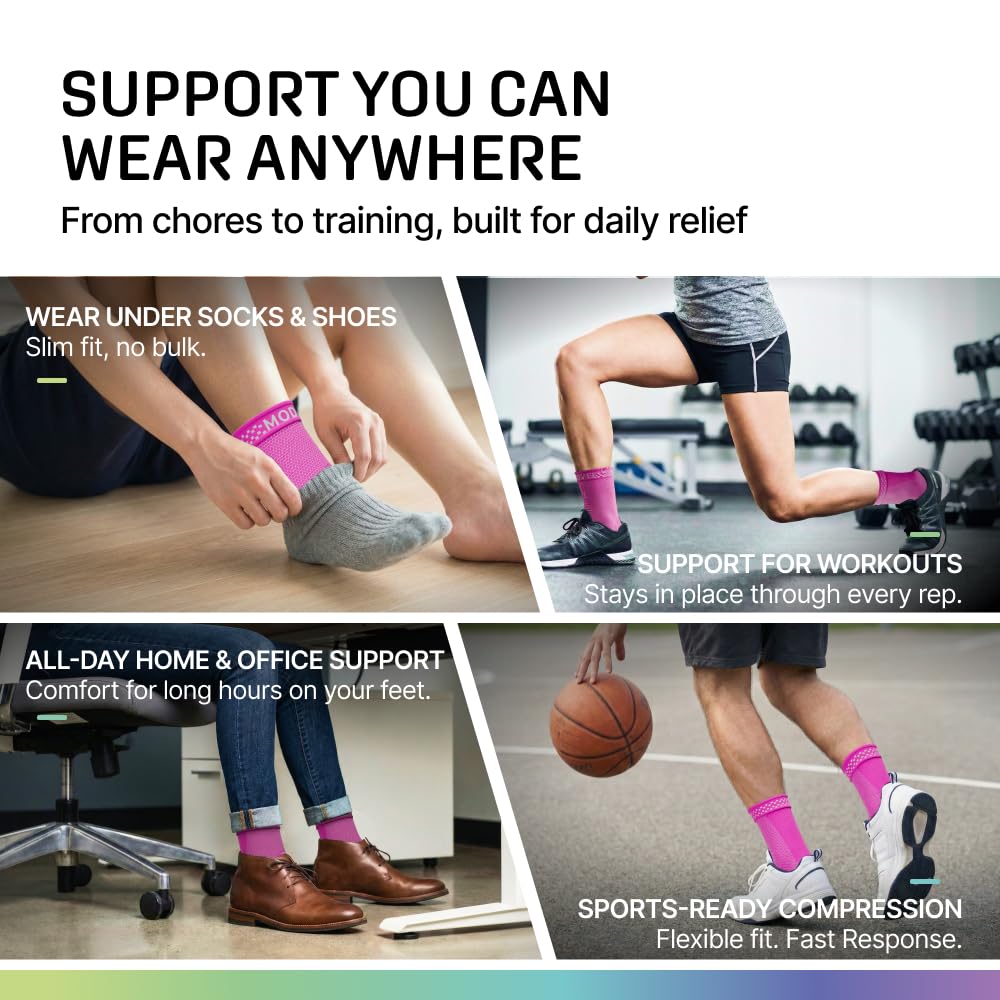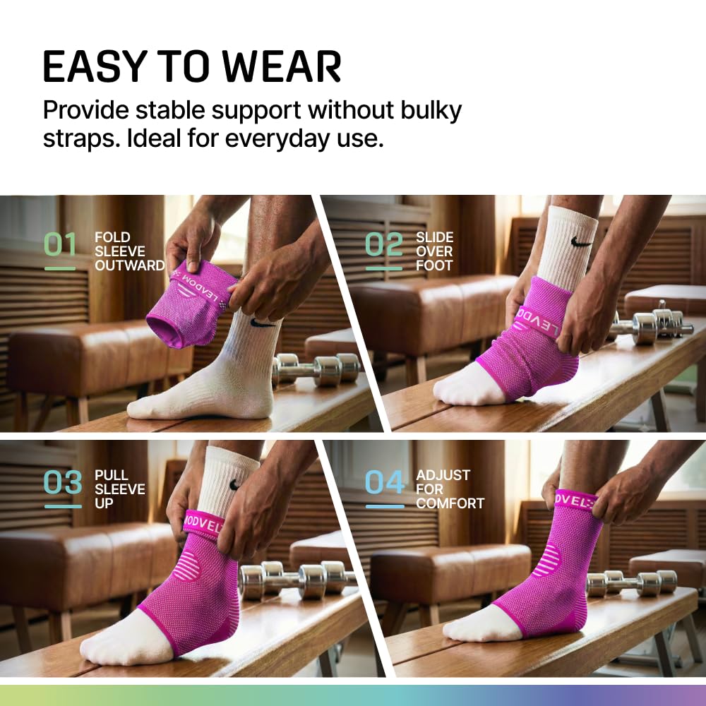 Breathable & Lightweight Fabric: Our ankle compression sleeve is made with premium fabric, breathable material that offers a lightweight feel. Designed with comfort in mind, it provides reliable ankle support while keeping your feet fresh and dry throughout the day.