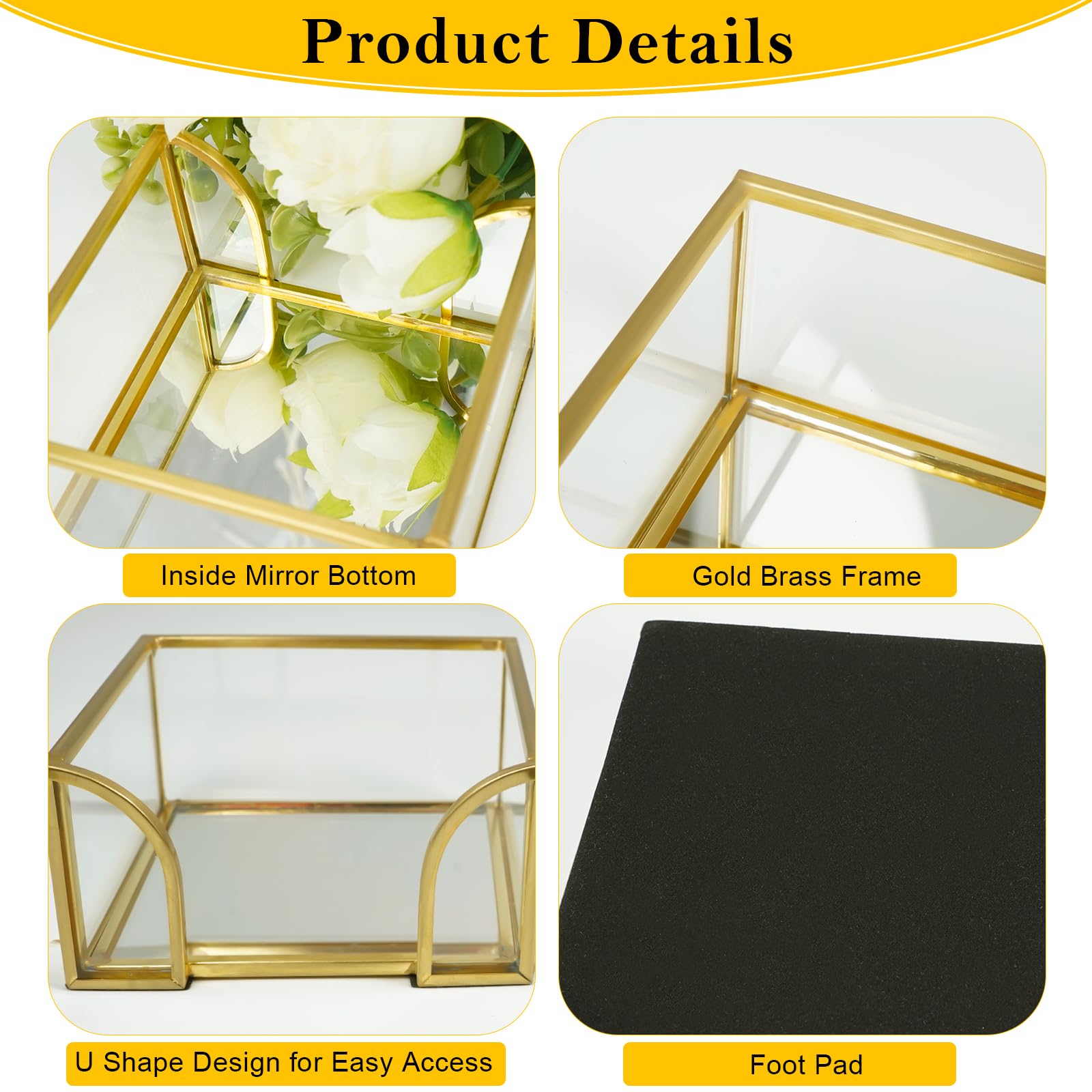 High Quality Material - Made of high quality glass and brass material with excellent craftmanship. The glass frame is carefully covered with beautiful gold color, and it's inside is desigend with mirrored bottom, which is stylish and elegant for decor.