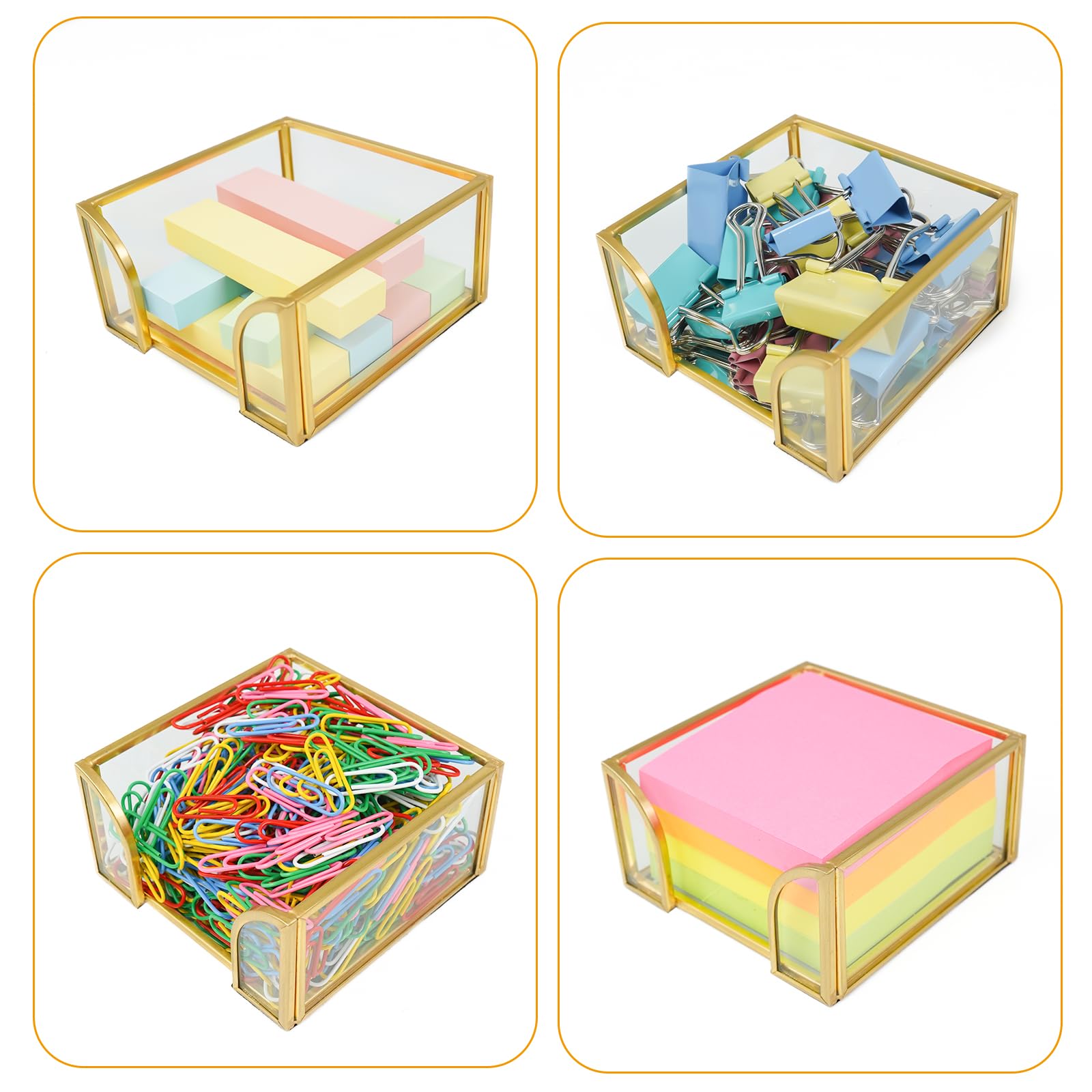 Shonmogar 3 x 3 Inch Gold Glass Sticky Note Holder Sqaure Sticky Note Dispenser for Dorm Room Office Desk