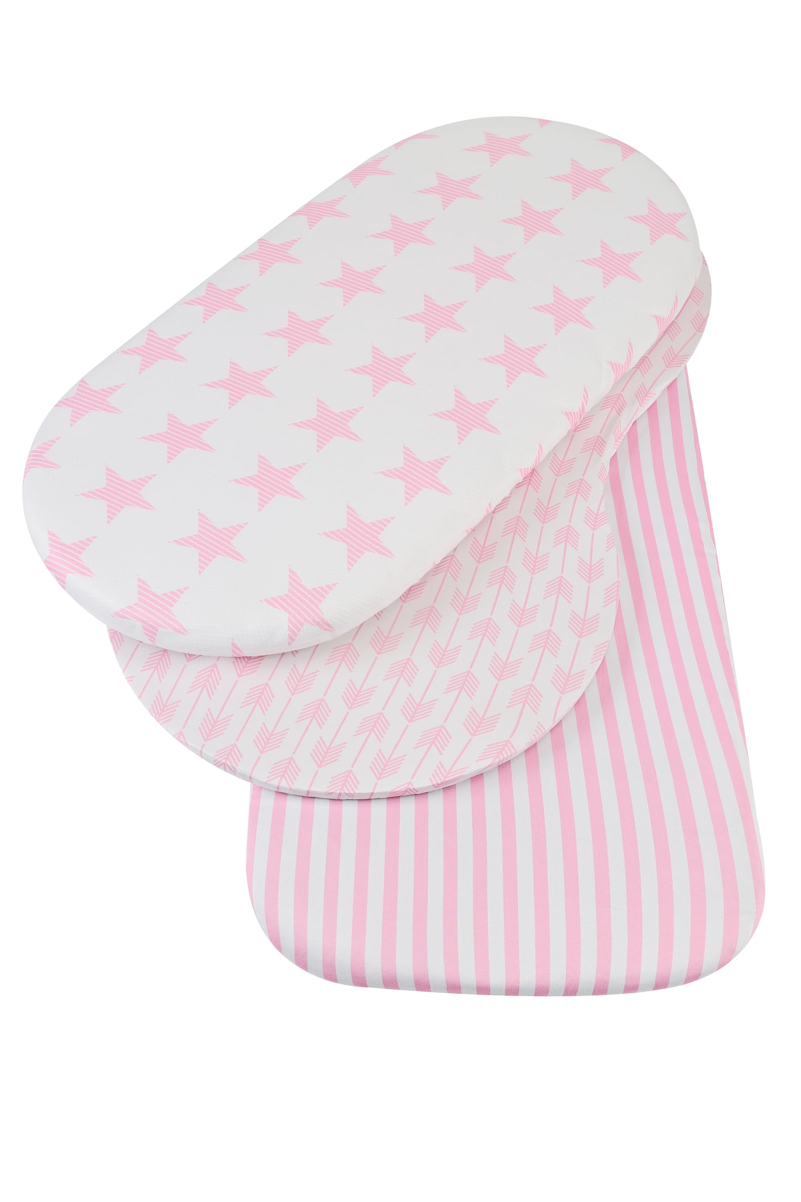 SWEET PATTERN: Our 3-pack bassinet fitted sheet set comes in white, with sweet pink stars arrows stripes printed, itβs easy to match any themed baby girl's bassinet.