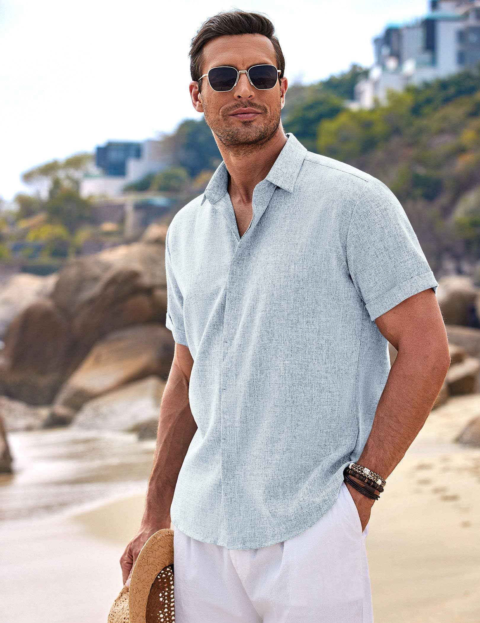 OCCASION --- Mens Rayon Linen Shirts For Beach suitable for beach, yoga, vacation, informal business, party, holiday, dating, wedding, travel, streetwear or any casual daily wear. Great for Summer, Spring, bring this Linen Button Down Shirts to Enjoy your Leisure Time
