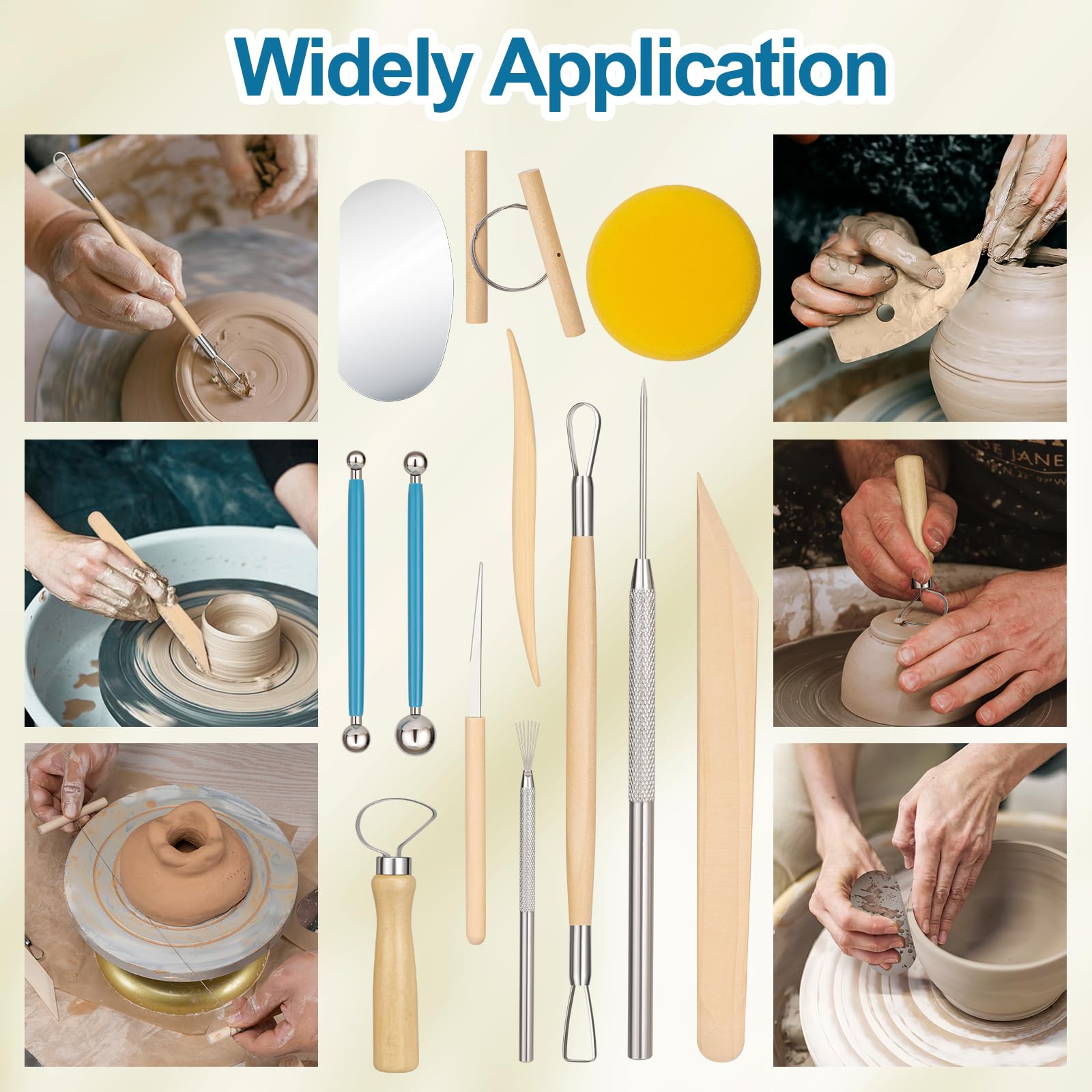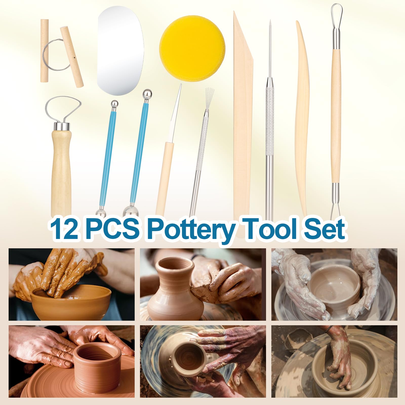 12 PCS CLAY TOOLS: Includes 12 pottery clay tools, contains most of your clay working needs, such as sponge, metal rib, wooden clay tools, metal needle tool, etc. Easy to use for smoothing, shaping, cleaning and more other processes