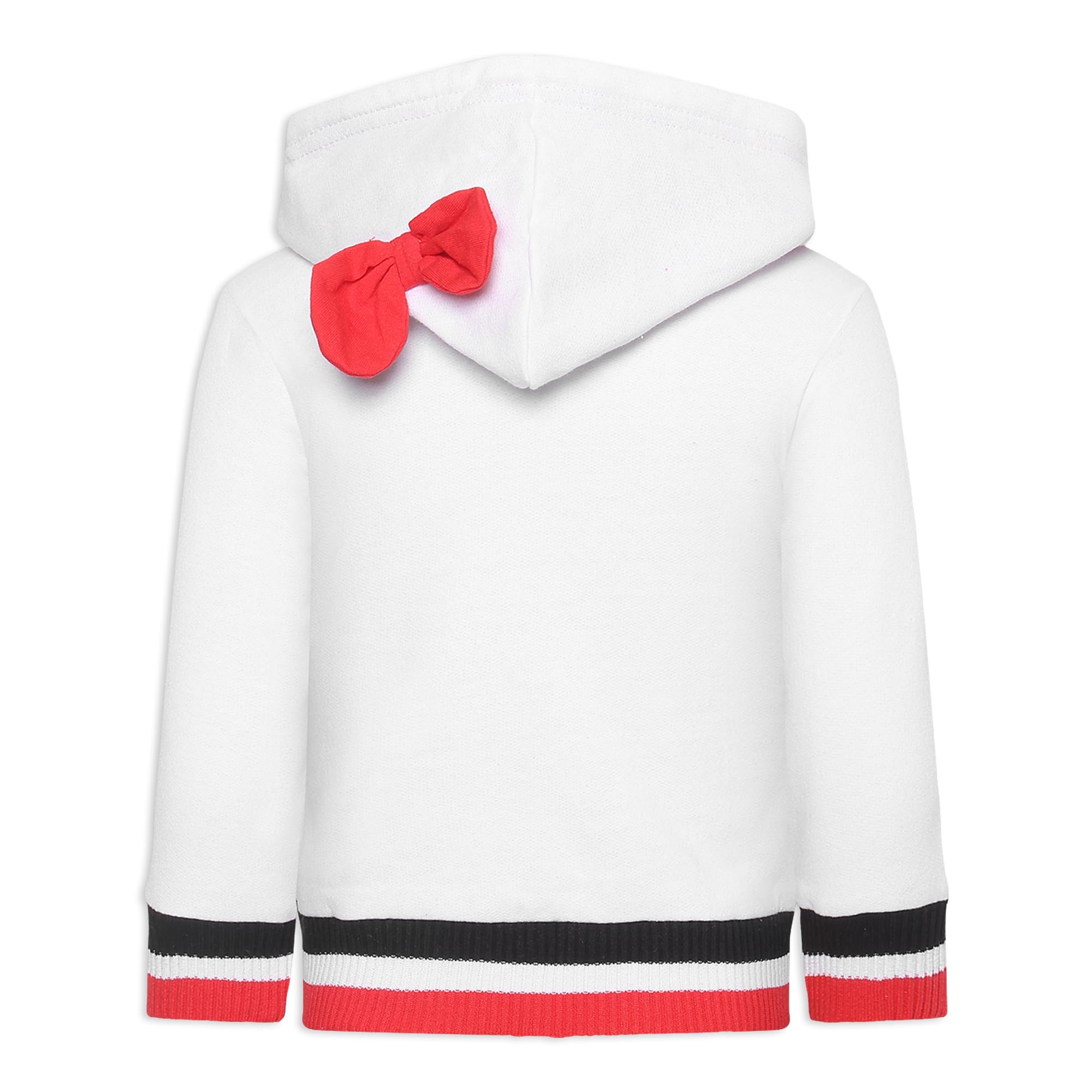 Contains One Cute White and Red Hello Kitty Print Zip Up Hooded Sweatshirt with a Bow