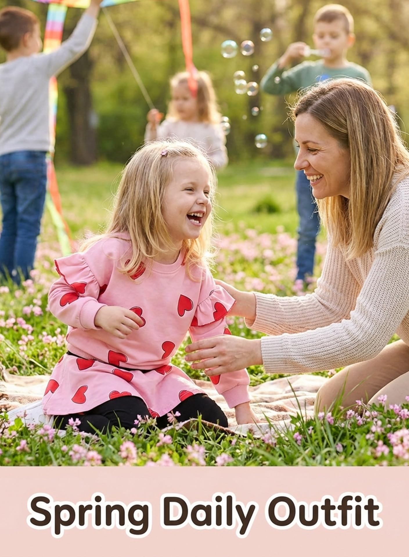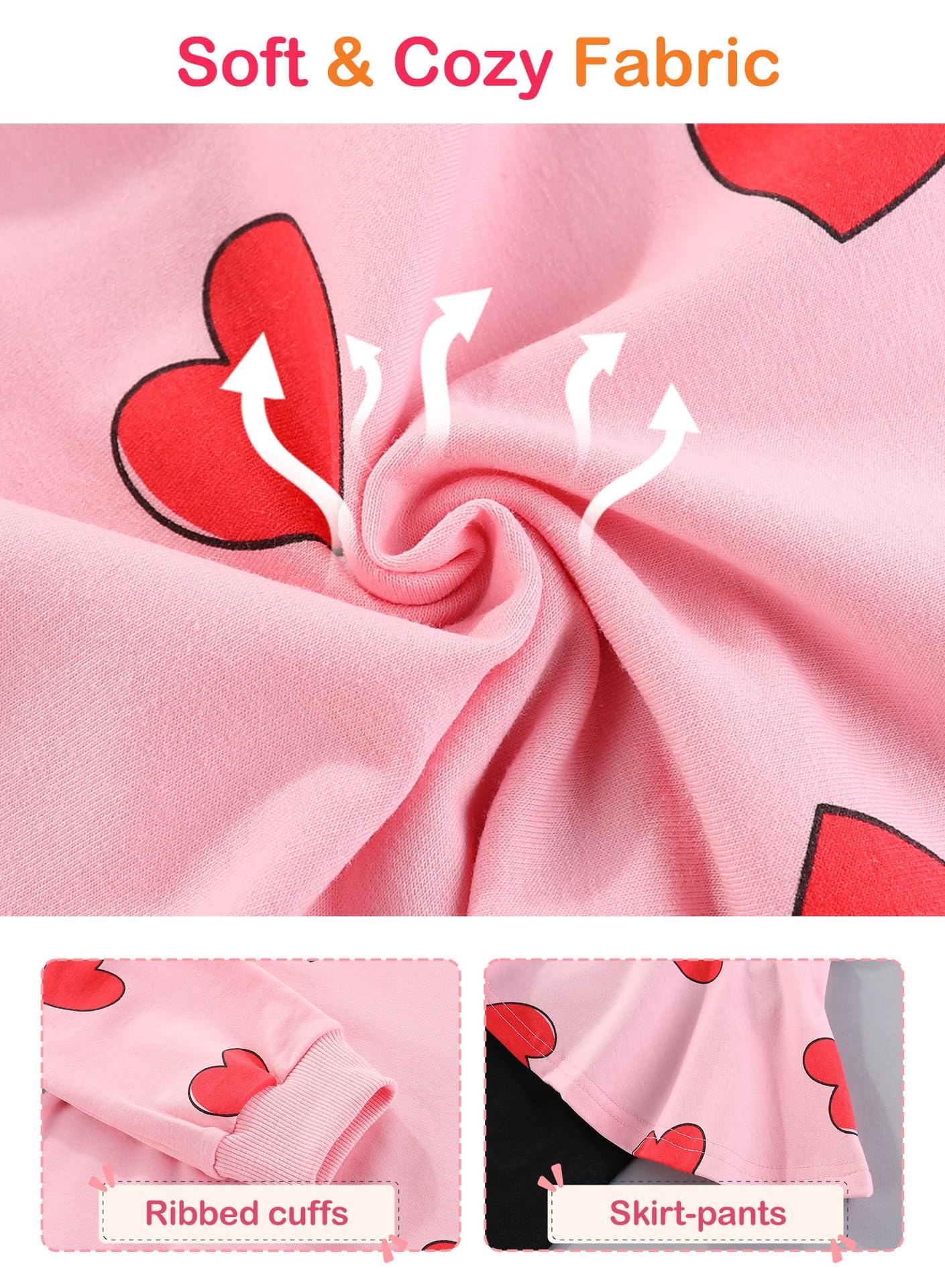 💝 Easy Care: The set includes a heart-print sweatshirt and coordinating skirt-pants, both made with comfort in mind. Simply machine wash in cold water with a gentle detergent for long-lasting durability.